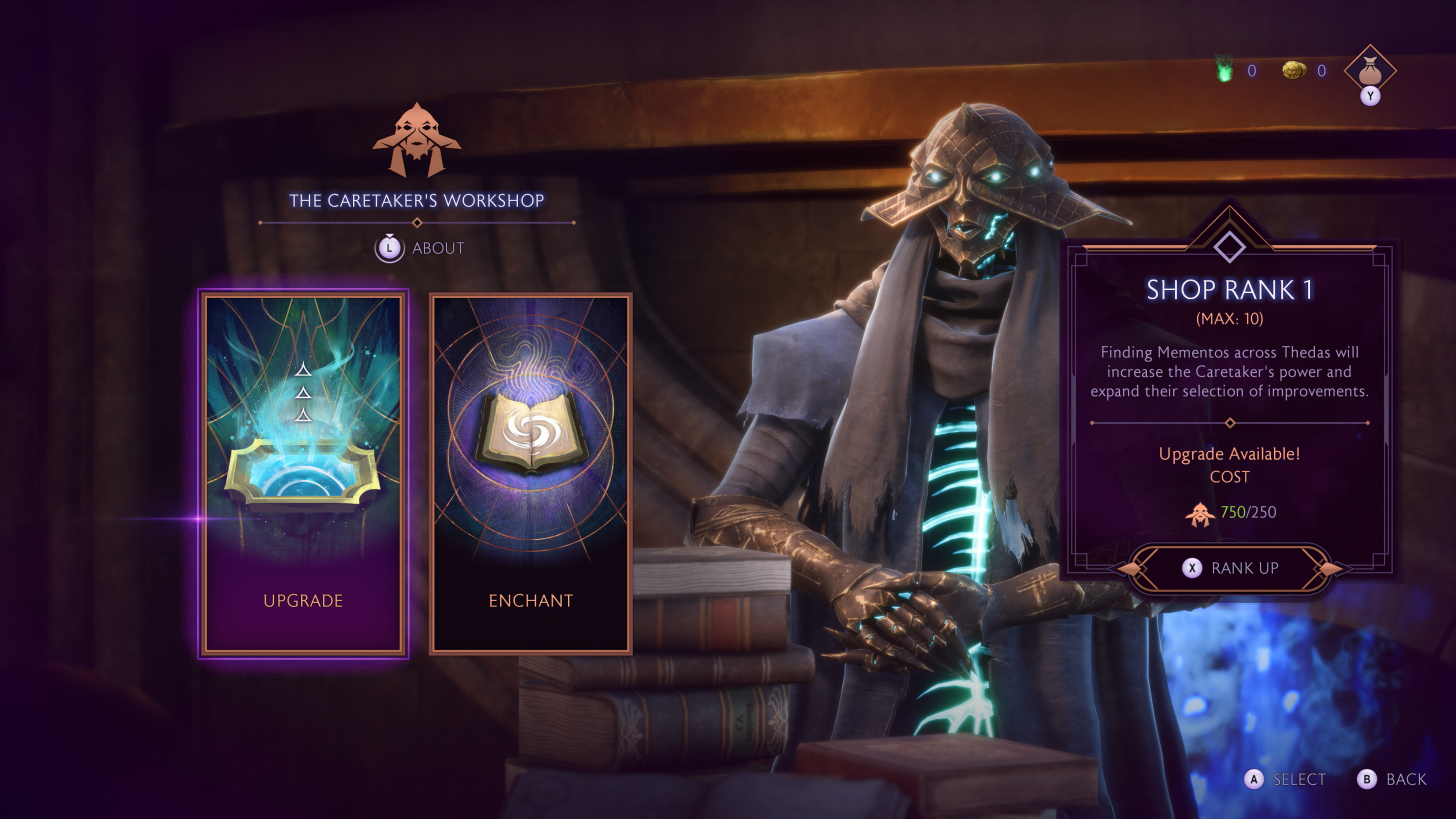For more upgrades, Rook will find the Caretaker’s Workshop in the Lighthouse, as seen in the screenshot, where equipment can be upgraded and enchanted to unlock additional effects for Rook and their Companions. Upgraded equipment will receive increased stats. There will be a list of basic enchantments to start with, but each time Rook upgrades the rank of the Caretaker’s Workshop, more enchantments will become available. Each item or Ability can have a single enchantment applied to it, and each enchantment can only be used on a single item or Ability at a time.
