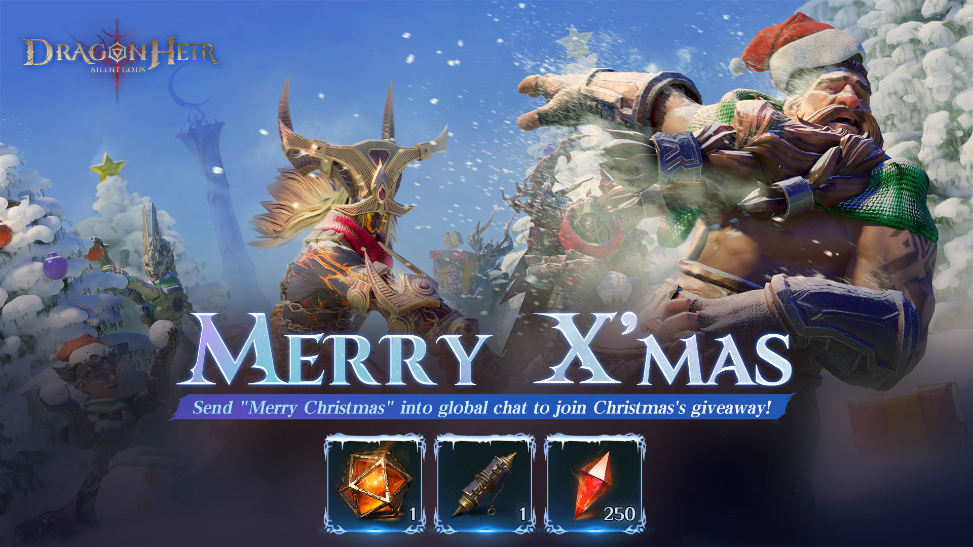 Travelers, the season of joy is here! To celebrate Christmas, we’ve prepared a festive event filled with good vibes and exciting rewards. ???? How to Participate: Send “Merry Christmas” in the in-game global chat. Take a screenshot of your message. Share your screenshot in the comments below. ???? Period: December 25, 2024 - December 31, 2024 ???? Rewards: At the end of the event, 10 lucky participants will be randomly selected to receive in-game gift codes! Event link: https://www.facebook.com/DragonheirGame/posts/pfbid022SbE5EitajaxFQuFZcfLYPcQKA1zyCDn9VyVFcZyT8BaPYNTGDLHgHsAWeR86ukBl ???? Notes: Only submissions within the event period will be accepted. Screenshots must be original and not taken from others. Players must follow community rules. Any inappropriate content will result in disqualification. Each participant can only submit once—no repeat entries allowed. ???? Don’t miss this chance to spread the holiday cheer and win! Share your Christmas wishes now! #dragonheir #dragonheirsilentgods #downloadnow ???? Download Dragonheir NOW: https://bit.ly/downloaddragonheir