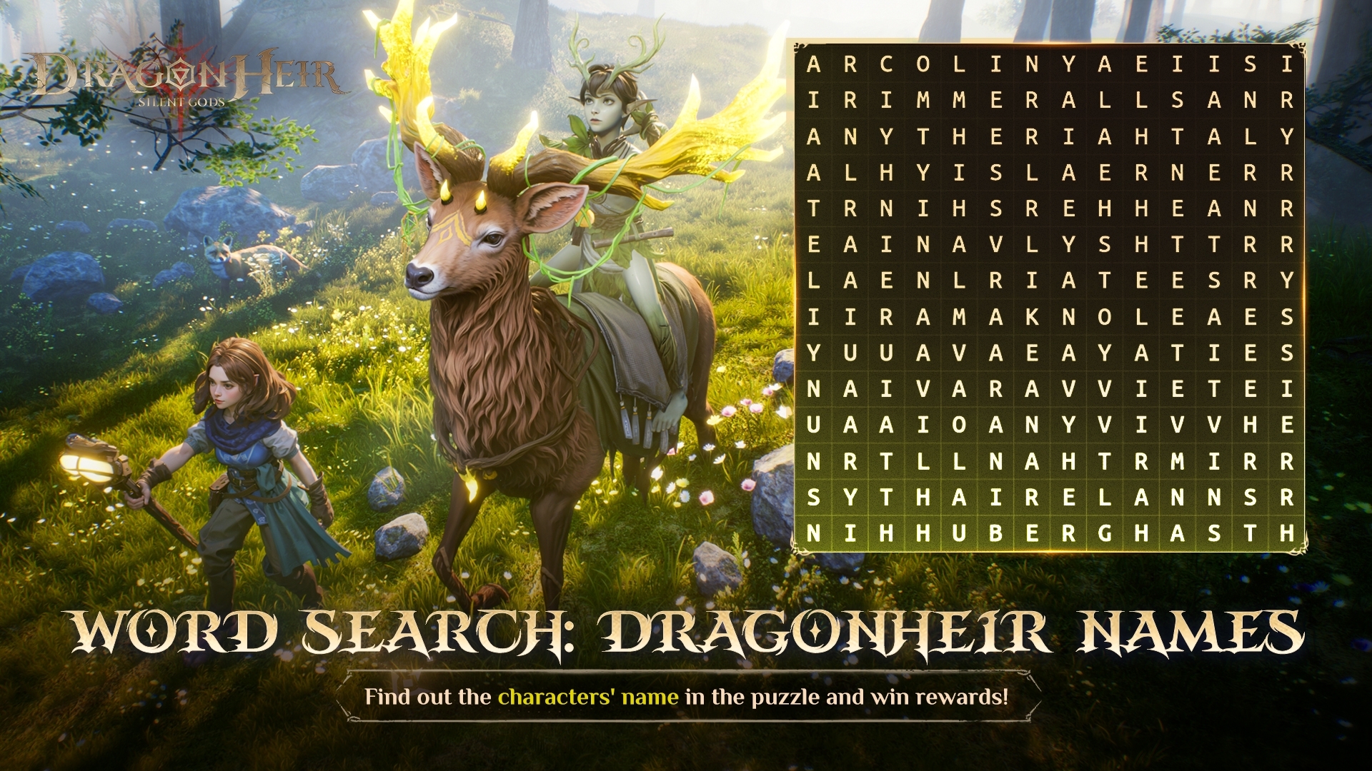 Ready for a fun challenge, Travelers? It's time to test your knowledge of Dragonheir names! ???? ???? How to Participate: Find at least 3 characters' names in the word search puzzle. Circle them out on the image. Post your screenshot in the comments below! Post link: https://www.facebook.com/DragonheirGame/posts/pfbid0agciko1iwtF4NqEbGRDL1aejTAdwoxFjS4ZtevB1Awx2DrZtrs2VqYY33xhfrz3pl ???? Event Period: From January 29th to February 4th ???? Rewards: $10 in-game code for 10 lucky winners! Good luck, and let the search begin!✨ ???? Download Dragonheir NOW: https://bit.ly/downloaddragonheir