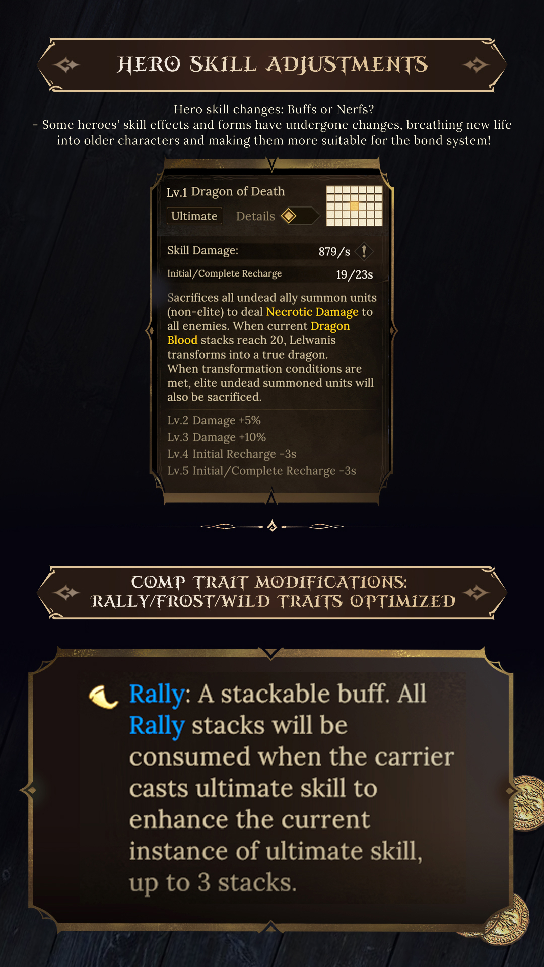 Comp traits have been refined and expanded. Traits like Rally and Frost now provide more depth and stack mechanics for better control in battle.