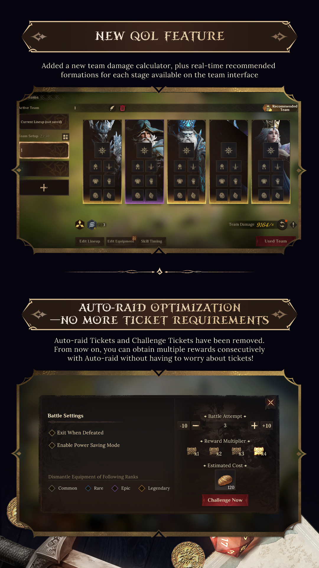 Auto-raid now includes smarter team selection and memory-saving to reduce prep time and get you back into the action faster.
