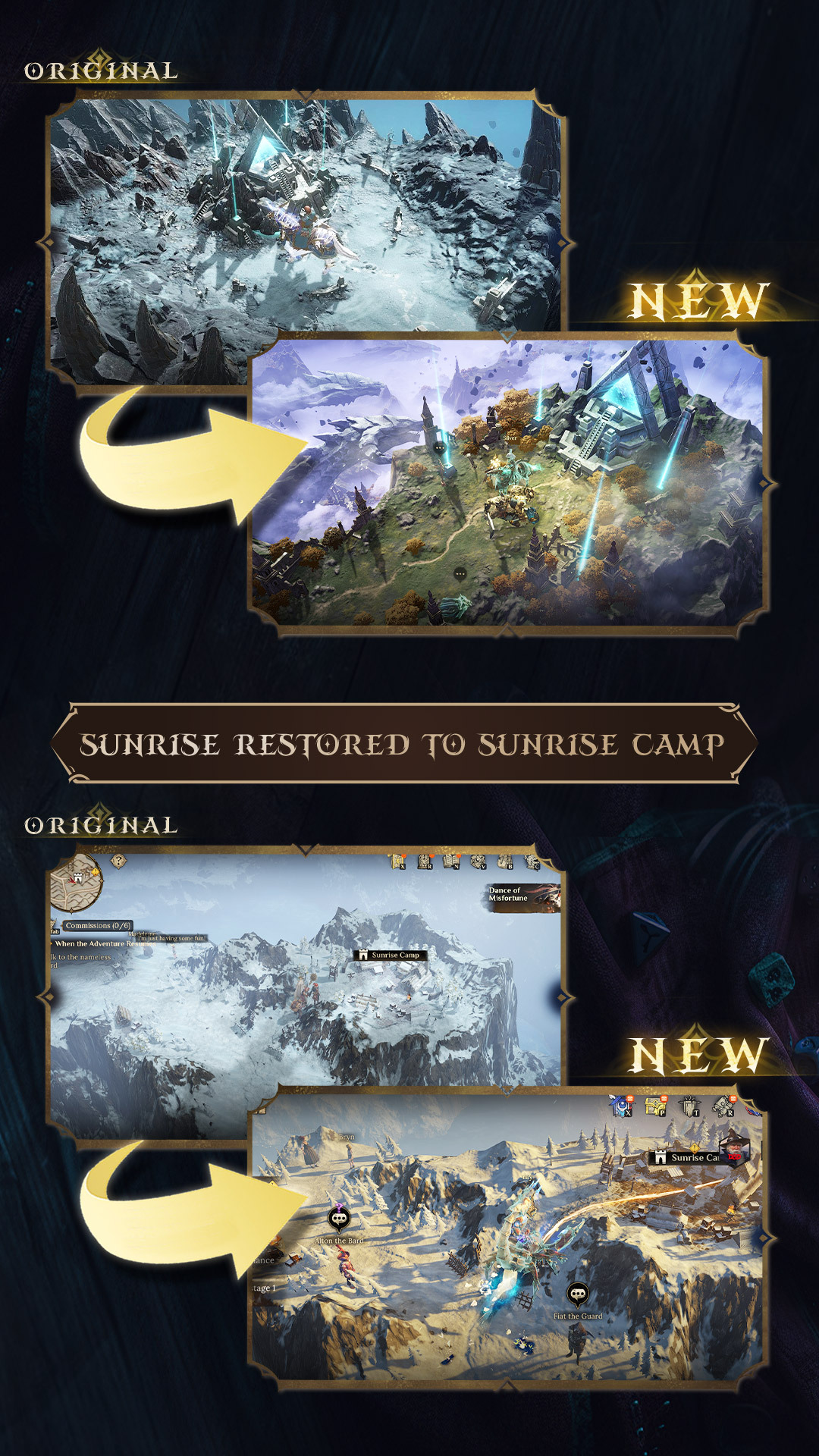 Major regions like the Chaos Universum have been overhauled with stunning new visuals—dull landscapes transformed into vivid realms full of atmosphere. Besides that, zones like the Service Camp and Sanctra Citadel have been rebuilt to improve structure, clarity, and immersion.