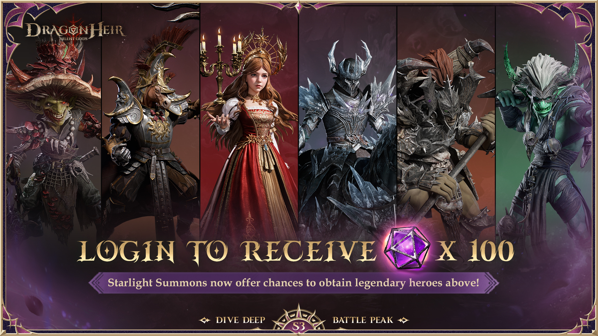 Exciting news, Travelers! Starting soon, there's a chance to summon Legendary Heroes like Felicity, Hochadir, Ripekas, Sagomir, Sutha, and Talwer in the Starlight Summon. Plus, expect 100 Starlight Stones as compensation sent via email to players limited to S1 character level greater than or equal to 3, and for all S2 and S3 ones. The compensation will be saved from April 30th to May 10th and, as long as the newly created character reaches level 3, it can also be claimed. So claim yours before it's too late! ???? PS. The probability of getting a Legendary Hero in the Starlight Summon is 0.2%! To get more details about the update, please check the in-game notice! ???? Dive Deep, Battle Peak! #dragonheir #dragonheirsilentgods #downloadnow ???? Download Dragonheir NOW: https://bit.ly/dragonheir-downloadnow