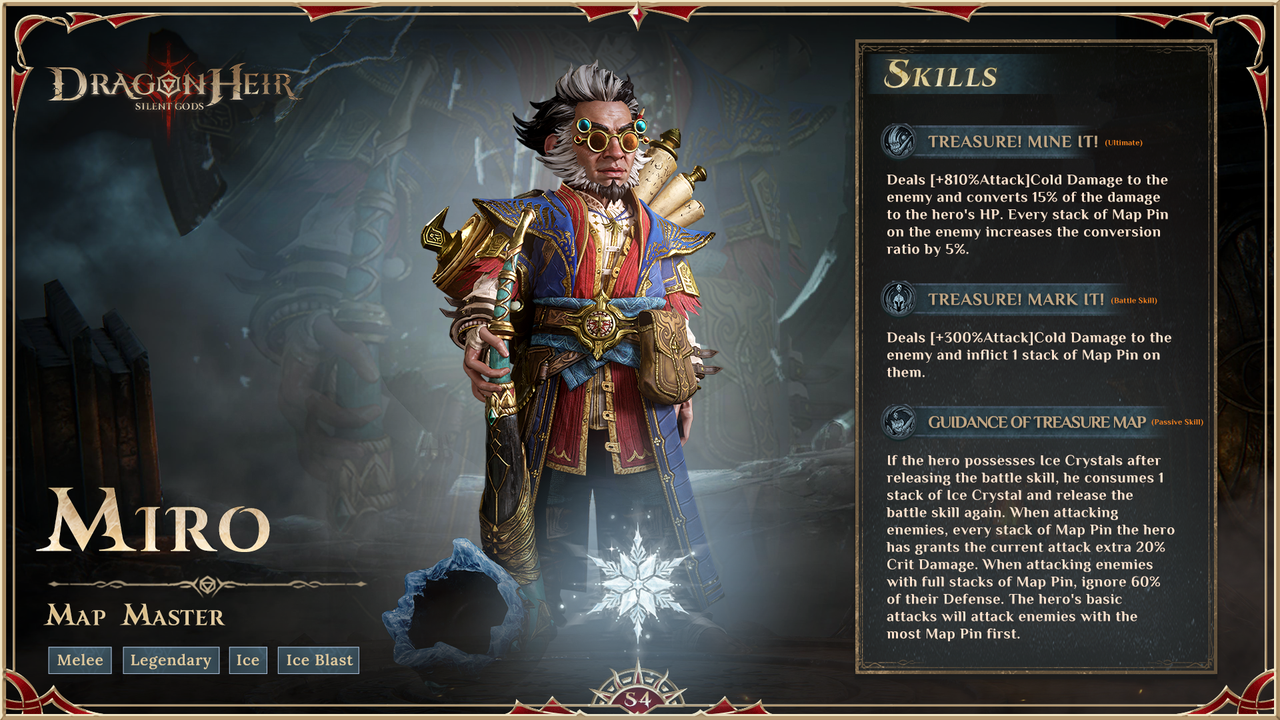 ????️ Miro, the Map Master ❄️ [Melee, Legendary, Ice Blast] Element: Ice Miro, a central figure in the Crimson Crow Guild, is renowned for his exceptional cartography skills and uncanny ability to navigate even the most treacherous ruins. While his kleptomaniac tendencies might cause a few missing coins here and there, his adventurous spirit and dedication to exploration make him an invaluable asset to any team. Uncover Miro's hidden talents in the image below! Don't miss the opportunity to get him in the new Season 4!???? #dragonheir #dragonheirsilentgods #downloadnow ???? Download Dragonheir NOW: https://bit.ly/dragonheir-downloadnow