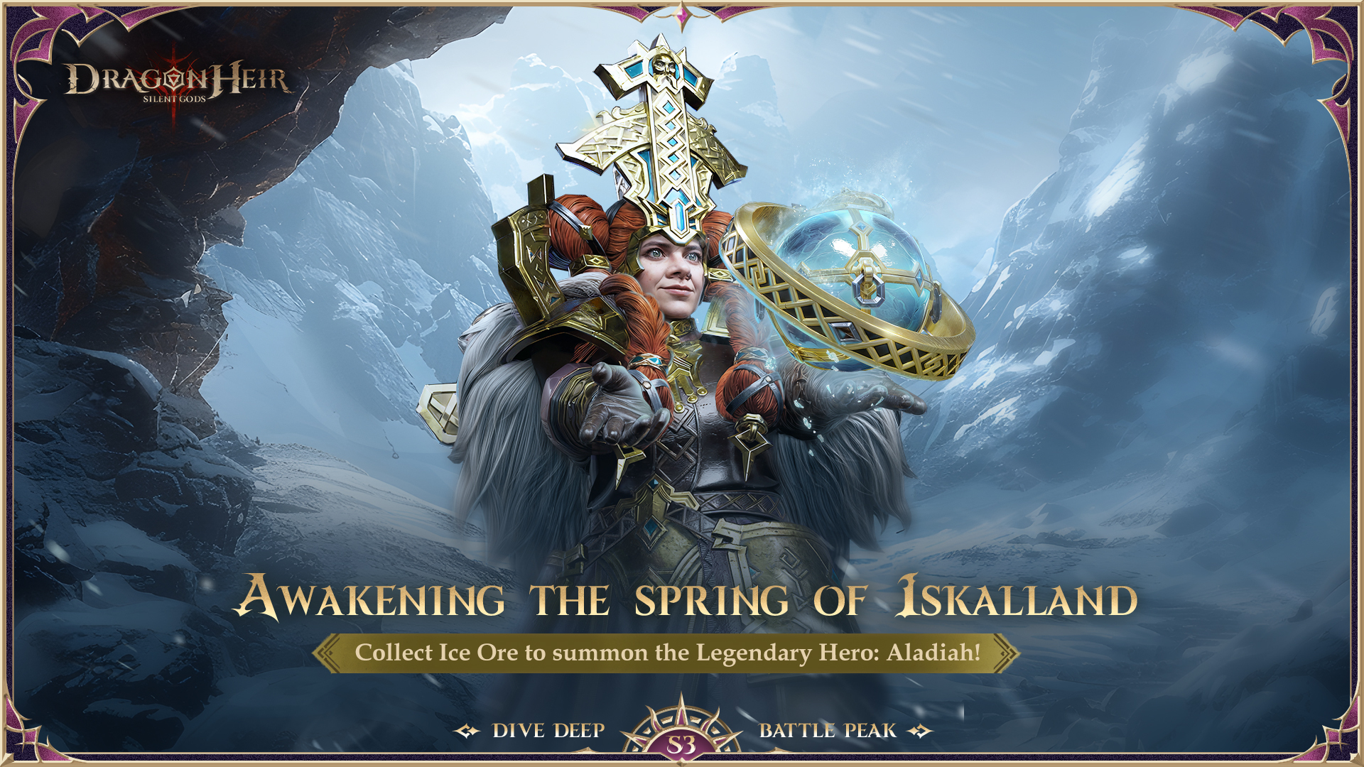 Let's dive into the adventure together! Redeem the hero Aladiah with Ice Ore and increase your power on the battlefield! How to obtain Ice Ore? 1. Summon to Get Shards: Perform Heliolite Summonings to claim extra rewards. Up to 60 Ice Ore can be claimed in total. Summoning count resets at the end of the event. 2. Continental Challenge: Find and defeat various Bosses across Adenthia during the event. Receive rewards based on the damage dealt, with extra points granted for higher damage. Leaderboard rankings are settled weekly, with extra Ice Ore granted based on your ranking. 3. Snowstorm Dungeons: Challenge different dungeons to earn points and Ice Ore. Ore Shop: - Exchange Ice Ore for rewards at the Ore Shop, which opens at the start of the event. Remember to exchange for rewards before the season ends, as the Ore Shop will close thereafter. Get ready to awaken the spring and claim your rewards! Log in and join the adventure today! ????️ ???? Dive Deep, Battle Peak! #dragonheir #dragonheirsilentgods #downloadnow ???? Download Dragonheir NOW: https://bit.ly/dragonheir-downloadnow
