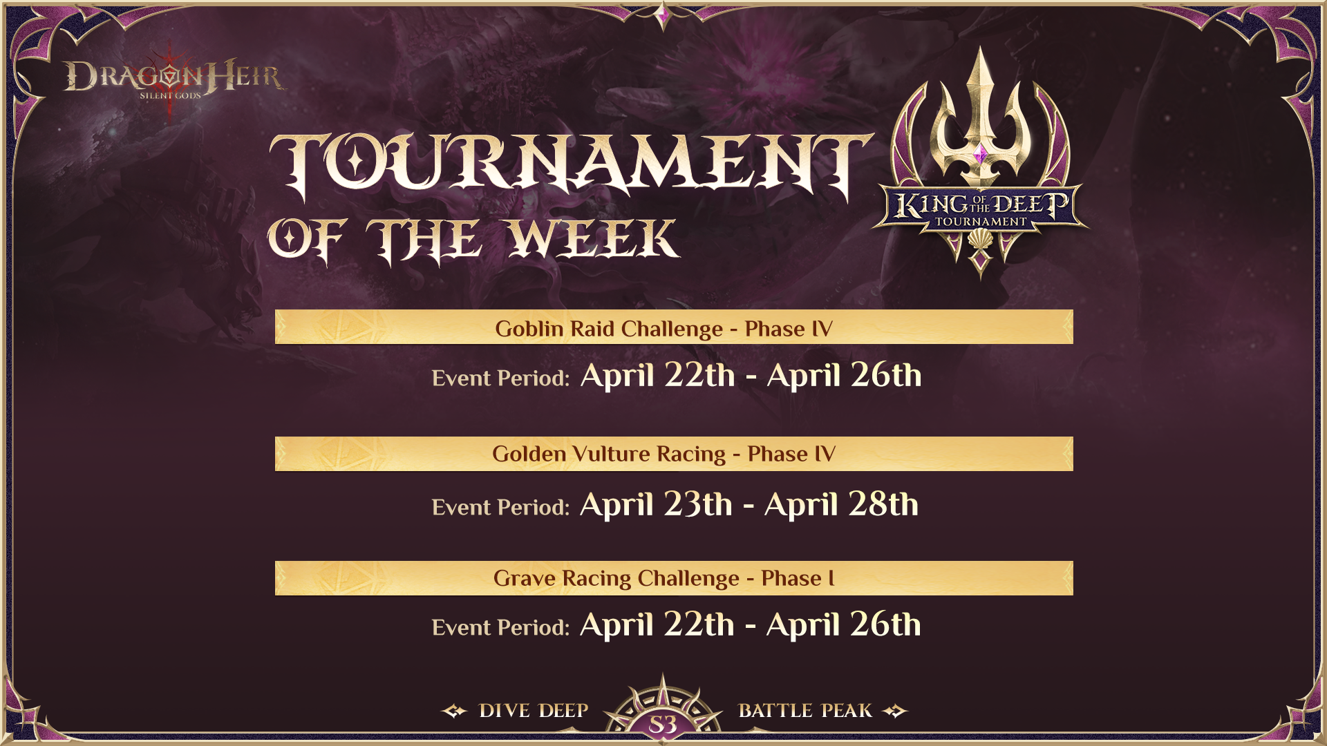 ???? King of the Deep Tournament Week Schedule! ????