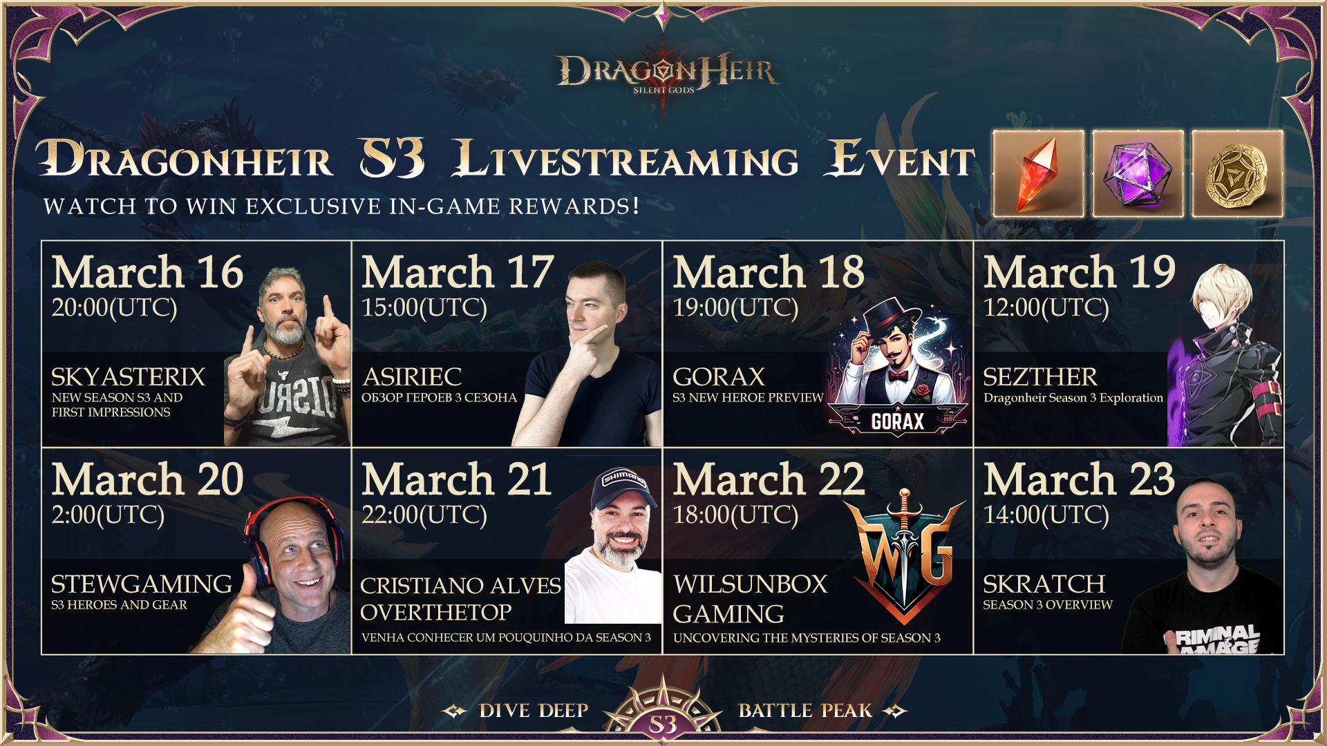 ???? Get ready for an immersive experience as we kick off our Season 3 pre-launch extravaganza! ???? For the next few days, we're bringing you daily livestreams from 8 incredible creators, each offering a unique glimpse into the excitement of Season 3. From new features to thrilling gameplay, there's something for everyone! Stay tuned for exclusive reveals, behind-the-scenes insights, and plenty of surprises along the way. Livestream Link: Skyasterix: https://www.youtube.com/@skyasterixgaming Asiriec: https://www.youtube.com/c/Asiriec Gorax: https://www.twitch.tv/goraxplays SezTher: https://www.youtube.com/channel/UCizmBA3yeSpsYTbuu3omN1Q?view_as=subscriber StewGaming: https://www.twitch.tv/stewgamingtv Cristiano Alves OverTheTop: www.youtube.com/@CristianoAlvesOverTheTop Wilsunbox Gaming: https://www.twitch.tv/wilsunboxgaming Skratch: https://www.twitch.tv/skratchplays Don't miss your chance to be a part of the action!