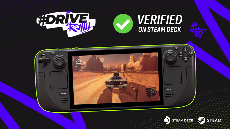 Tell your friends, tell your mama—#DRIVE Rally is now Steam Deck Verified! With the latest update, we’ve got that sweet green badge of honor, so it’s official. Grab your Deck and hit the road!
