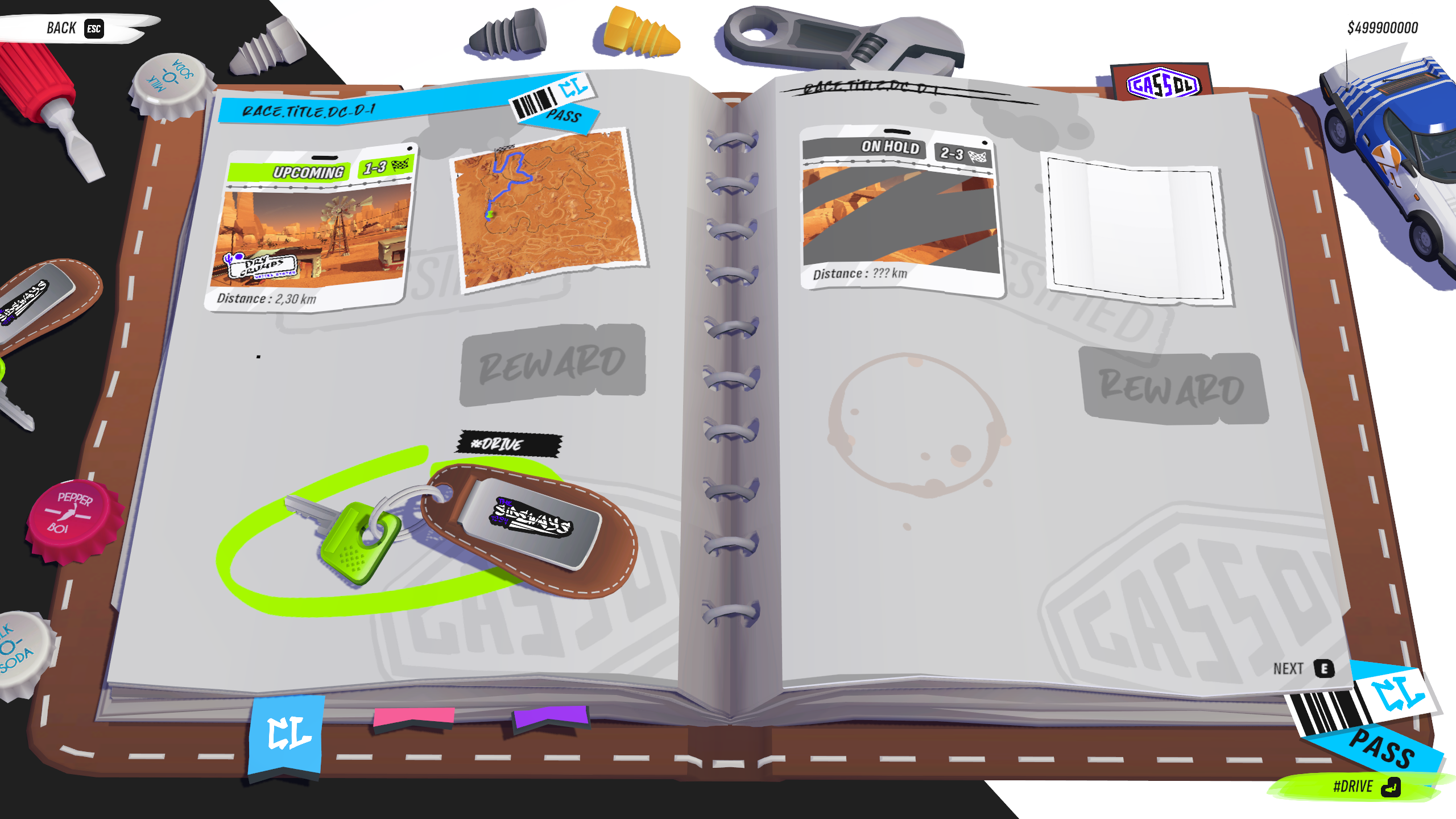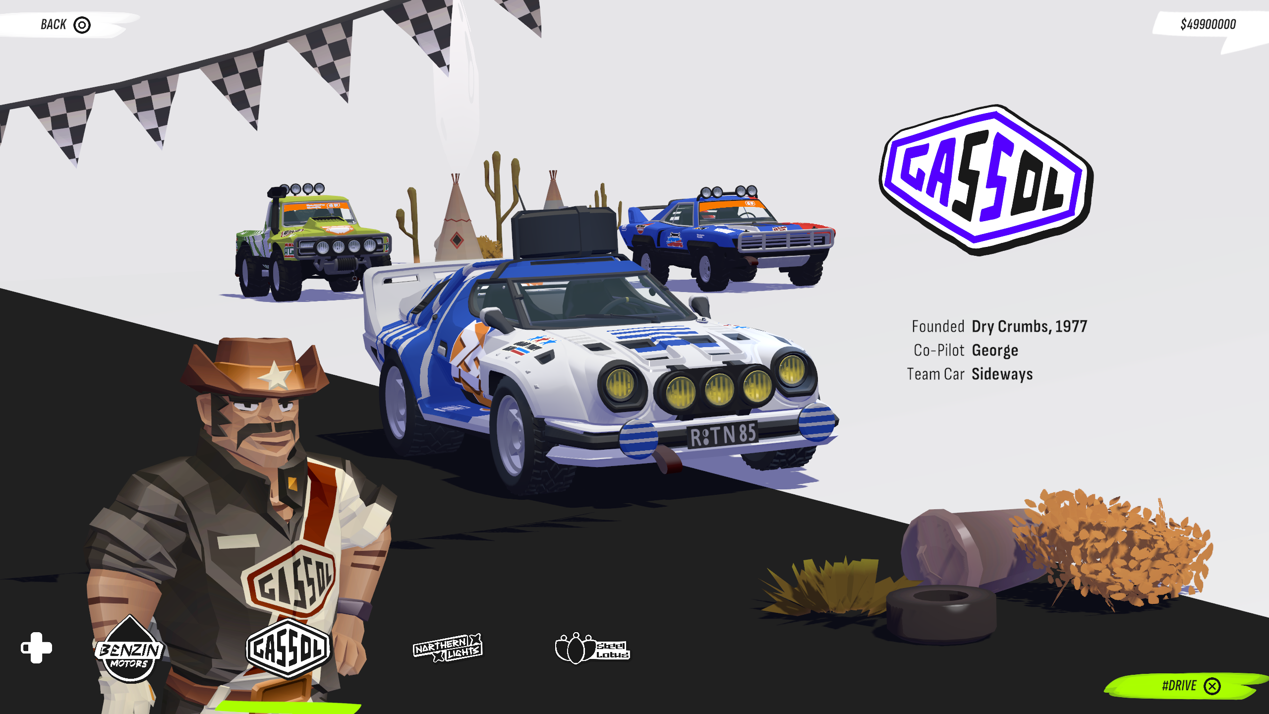 In the Dry Crumbs Championship, you’ll team up with the Gassol Team and your trusty cowboy co-pilot, George, to prove your worth on the sun-soaked desert tracks. Starting in the Sideways CL, the slowest car class, you’ll work your way up through the dusty, treacherous paths of Dry Crumbs. Don’t be fooled by the wide-open spaces—the desert hides plenty of challenges that will test your driving skills.