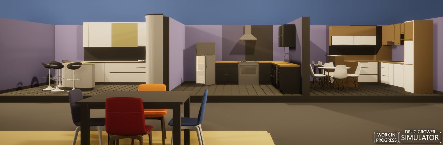 In general, the furniture will perform a decorative function and we will tell you about the system that will allow buying and placing furniture around the apartment in [url=https://discord.gg/njUTraZ5][u][b] future devblogs[/b][/u][/url]. Now you can see [b]kitchen [/b] sets that can be purchased in our ikea. In your kitchen you can produce weed cookies using a oven.
