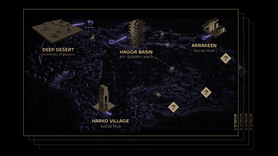 When you first start playing Dune: Awakening, you pick a server that will be your home. Each of these servers belong to a World and a World consists of many different servers. As a player, you will meet and interact with players from other servers in your World. The best way to explain how this works is looking at how our Arrakis is structured. Our Arrakis is made up of different and separate maps, some larger than others. Here are a few of the main ones:- [b]Hagga Basin:[/b] This is where you start out and where you will always return. It’s a big, persistent open world, similar in size to the map in Conan Exiles, and it consists of many different biomes. Here you must survive, build, and fight in the same space as several dozen other players who also belong to the server you picked. Players from other servers cannot come here. Player vs. player combat exists only in select areas of Hagga Basin.