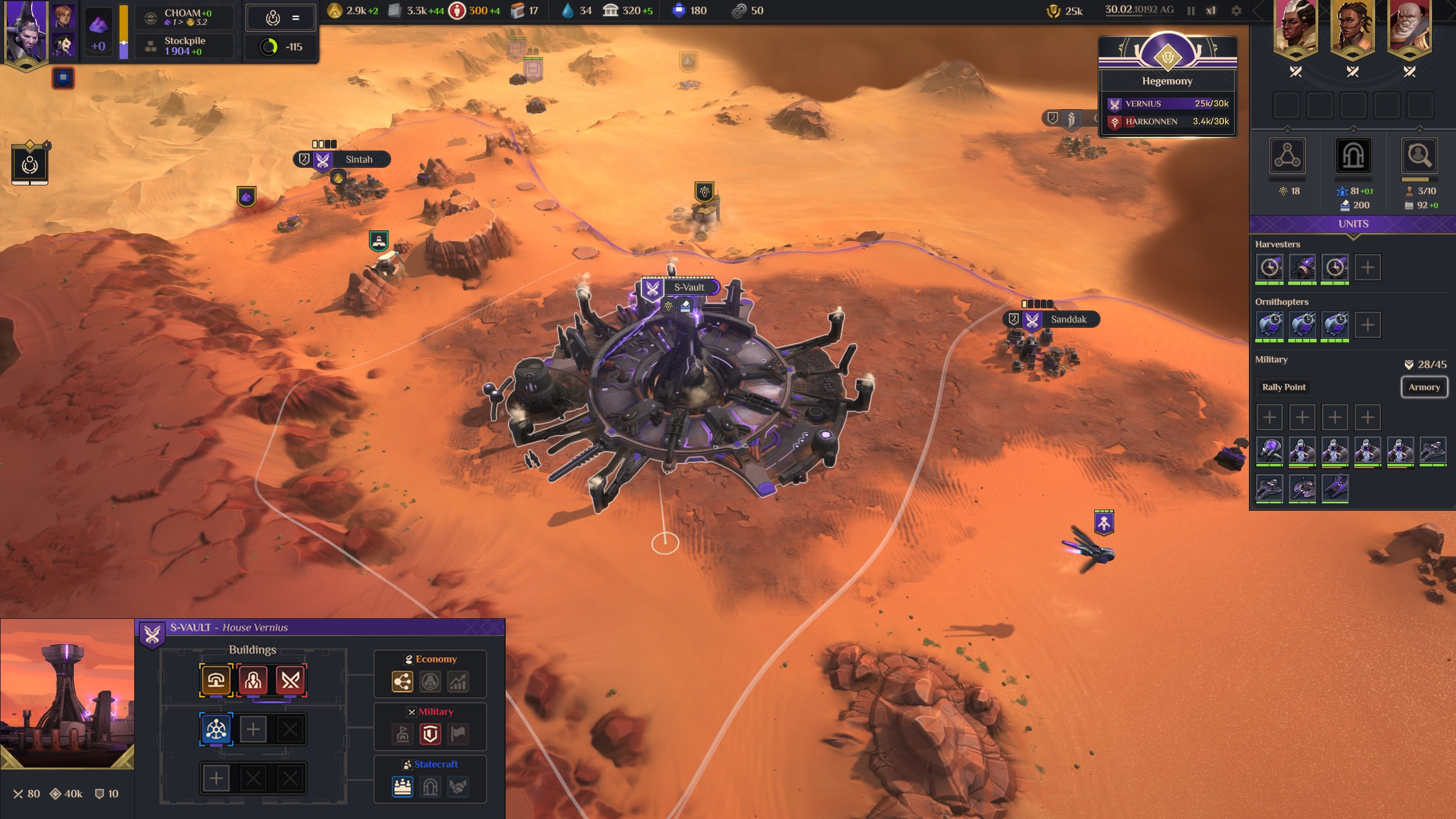 Diplomacy takes centre stage as you’ll need to navigate an intricate web of alliances within the Landsraad. House Vernius of Ix excels in the art of negotiation, offering unique opportunities to leverage strategic collaborations for mutual benefit. From technology sharing to resource allocation, every diplomatic decision carries the potential to shape the course of the war on Arrakis.