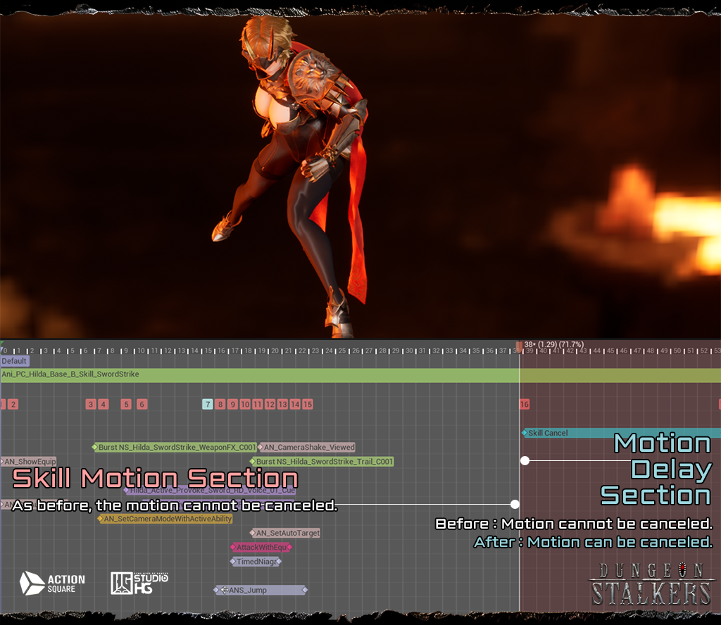 [i]“We are trying to naturally reduce the discrepancy between the player’s judgement and actual actions when a[b]ttacking, defending, and casting skills[/b] during battle.”[/i] The development team has consistently received feedback regarding the frustration caused by attacking, defending, and casting skills during battle, and we have recognized this as an important issue, and have been considering the causes in various ways. After much discussion, we have decided to improve the following first. [b]- The discrepancy between the player’s judgement and the actual end point of the action[/b] For example, after using Hilda’s skill “Bladeslam”, the player feels that the action has ended when the sword’s attack has ended. However, in reality, additional delays occur due to the animation of putting away the sword and getting up, and Hilda remains in place for a longer time than the player’s judgment. We defined this time as “frustration”. This delay was initially intended as a strategic element, giving opponents a window to counterattack. While we understand the appeal of this deliberate pace, we felt it was ultimately hindering the overall gameplay experience.