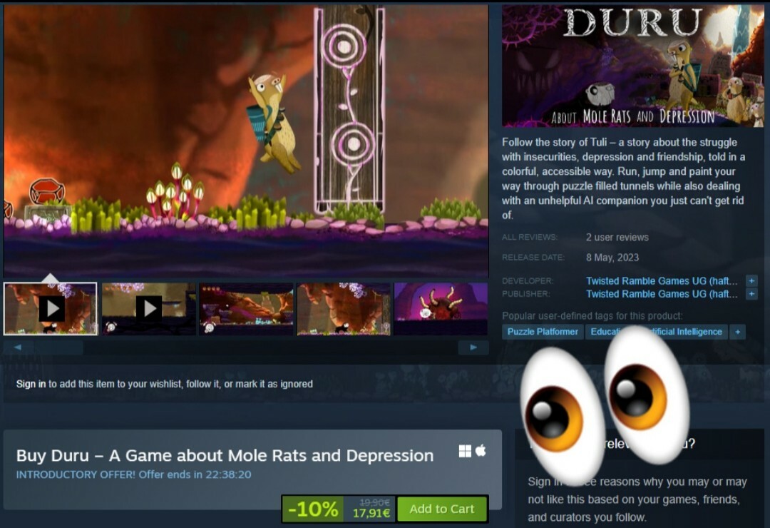There are less than 24 hours left on the special offer during the release week of Duru on Steam! ????