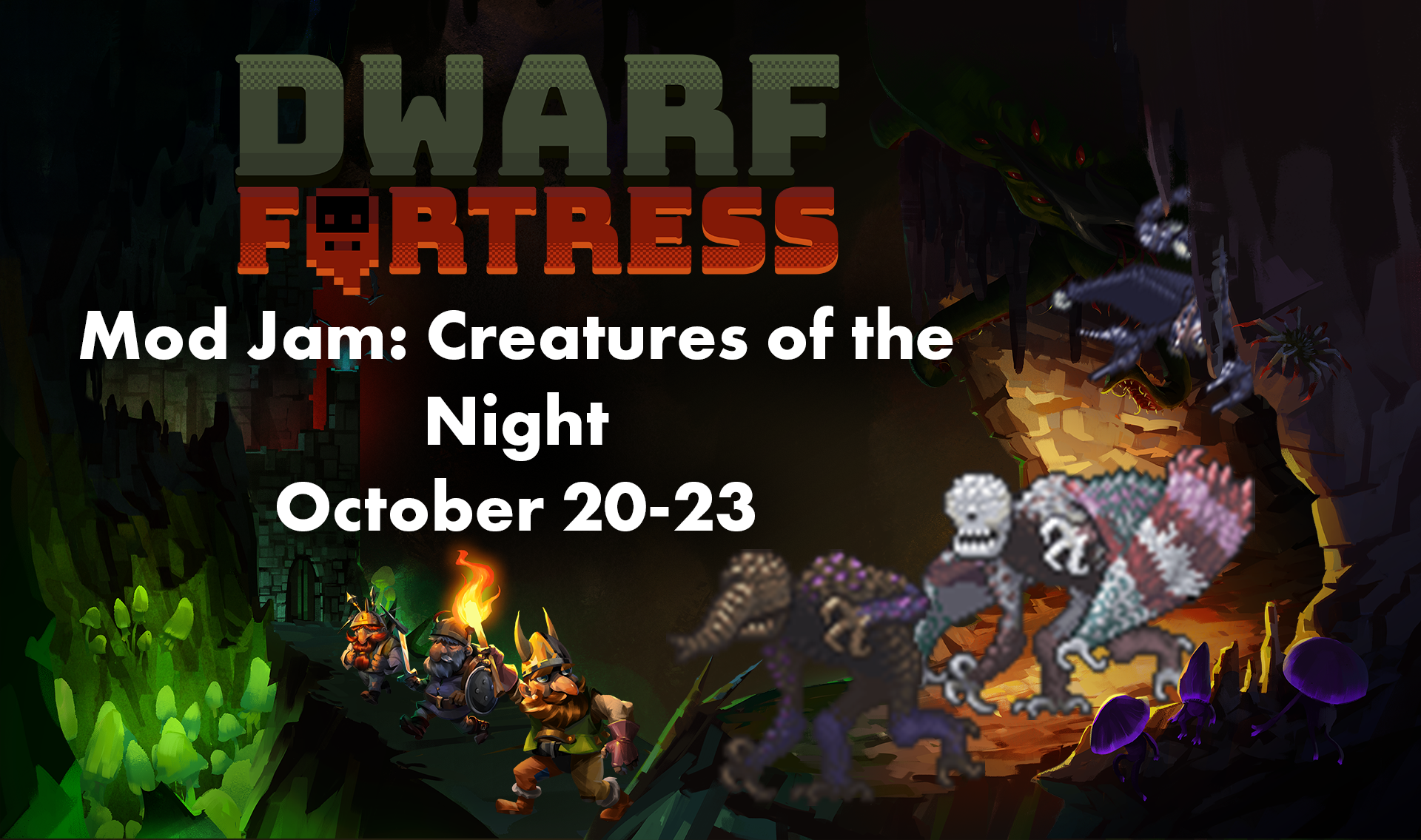 Inspired by the Caves of Qud mod jam and Titan fest, this three day jam is designed to be a beginner friendly way to try out modding in DF. Experienced modders are challenged to embrace the theme and experiment with lua. The jam will start on October 20-23rd with a showcase stream celebrating the entries on October 29th. Because it is so close to Halloween, the theme of the jam will be “Creatures of the Night” so we encourage mods with flavourful and fearsome monsters that suit the world of Dwarf Fortress. To register for the jam and more information please [url=https://itch.io/jam/creatures-of-the-night]go to the jam page on itch.io. [/url]