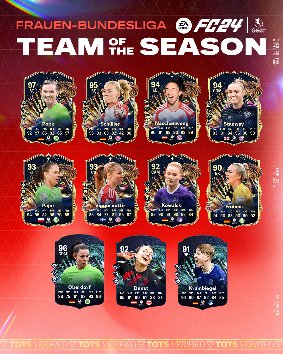 Head into Football Ultimate Team™ now to meet the stars of the Google Pixel Frauen-Bundesliga named in the EA SPORTS FC™ 24 Team of the Season.