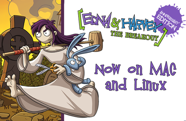 We are glad to announce that you are now able to play Edna & Harvey the Anniversary Edition on Linux and Mac as well! Less boundaries - more insanity!News Liste Edna & Harvey – The Breakout: 10th Anniversary Edition