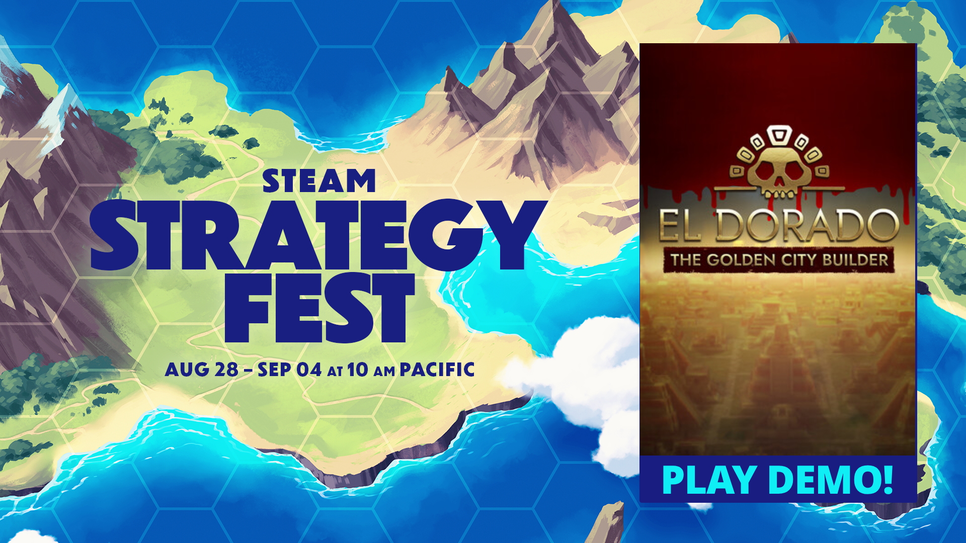 Another sunny day on the Yucatan Peninsula brought us yet another amazing news! ???? We are happy to announce that El Dorado: The Golden City Builder takes part in [b]Steam Strategy Fest 2023![/b] ???? ???? Starting today, till September 4th 2023 you can play the Demo Version of our game. We are very happy to be a part of this amazing event!t ???? https://store.steampowered.com/app/1451470/El_Dorado_The_Golden_City_Builder/