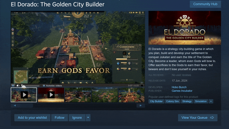 We want to make it as simple as possible, so only what you need to do is [b][url=https://store.steampowered.com/app/1451470/El_Dorado_The_Golden_City_Builder/]press the FOLLOW button[/url][/b] on the Steam page. ✅ You can also [b][url=https://store.steampowered.com/app/1451470/El_Dorado_The_Golden_City_Builder/]add the game to your Steam wishlist[/url][/b], to be up to date with the news! ???? [url=https://store.steampowered.com/app/1451470/El_Dorado_The_Golden_City_Builder/]