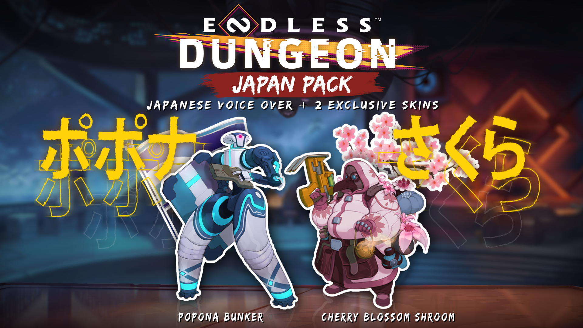 Today we are releasing (yesterday for Console players) the voice-over in Japanese for ENDLESS™ Dungeon. This is already included within the content of the patch. There is no doubt that a lot of people in the office are going to change to the JP voice from now on... You can find all the information on the [url=https://community.amplitude-studios.com/amplitude-studios/endless-dungeon/blogs/934-japan-pack-japanese-voiceover-and-skins][b][u]Dedicated Blog[/u][/b][/url][u][/u] [previewyoutube=3LK948iIoCU;full][/previewyoutube] To celebrate this release we have included 2 new skins that will be available automatically to the entire community (available NOW):- Cherry Blossom Shroom: no need for further explanation of the reference hehe