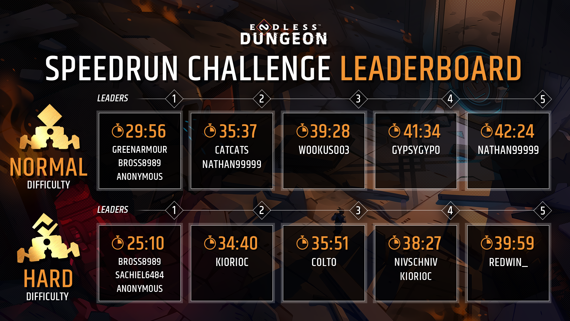 Here is the top 5 on Normal and Hard (but you will find out the top 10 further below)