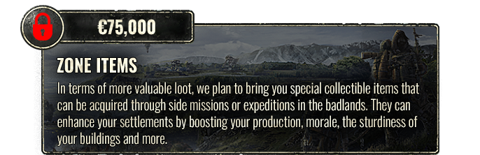 On top, the 75k € Stretch Goal has just been revealed. With this, the so-called Zone Items will be introduced in Endzone 2. These are collectible items that can be acquired through side missions or expeditions to enhance your settlements.