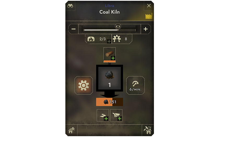 For a very basic early game building, this level of complexity is more than enough. But let's move a bit further down the progression. Soon, we will need a Coalmaker, as coal is a frequently used resource in many production chains, like protective clothing, iron smelting and many more. The Coalmaker requires wood to function. So, besides its construction costs, wood becomes a resource that is continuously consumed to produce coal.