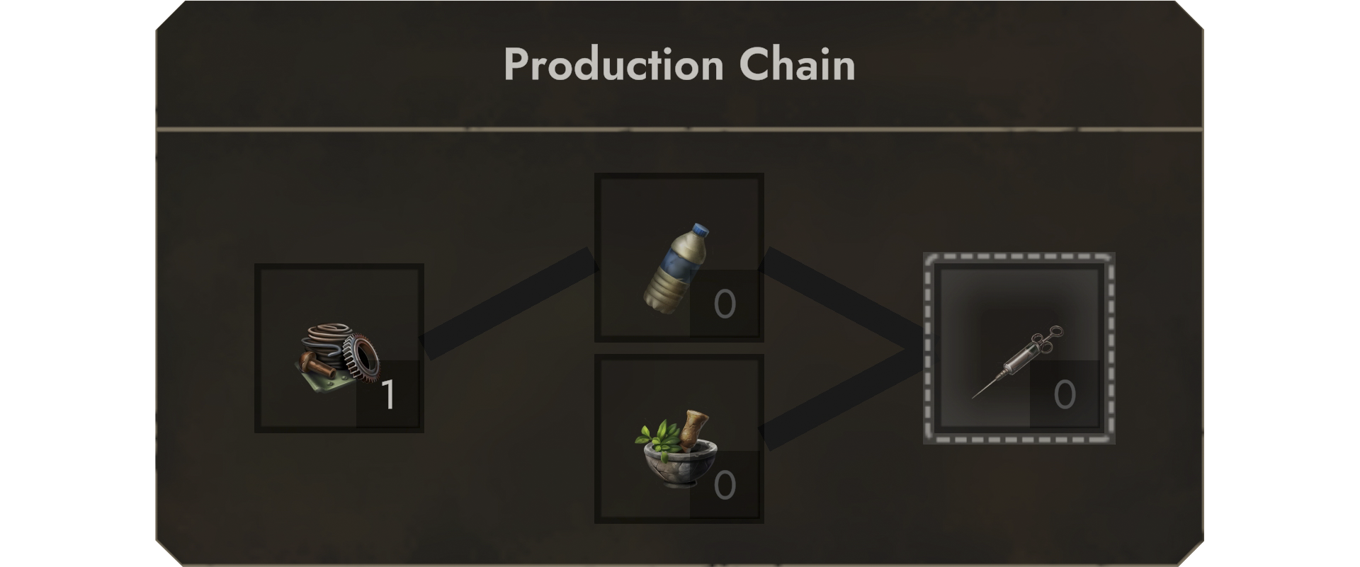 The screenshot below shows how such a production chain could be placed if enough space is available. Note however, that this particular zone did not even have proper resource slots for iron or even copper, so 2 mines are still missing here to even make it function. This particular case would require to construct mines on a different zone that has copper and iron available and transfer them via [b]Trading Routes[/b].