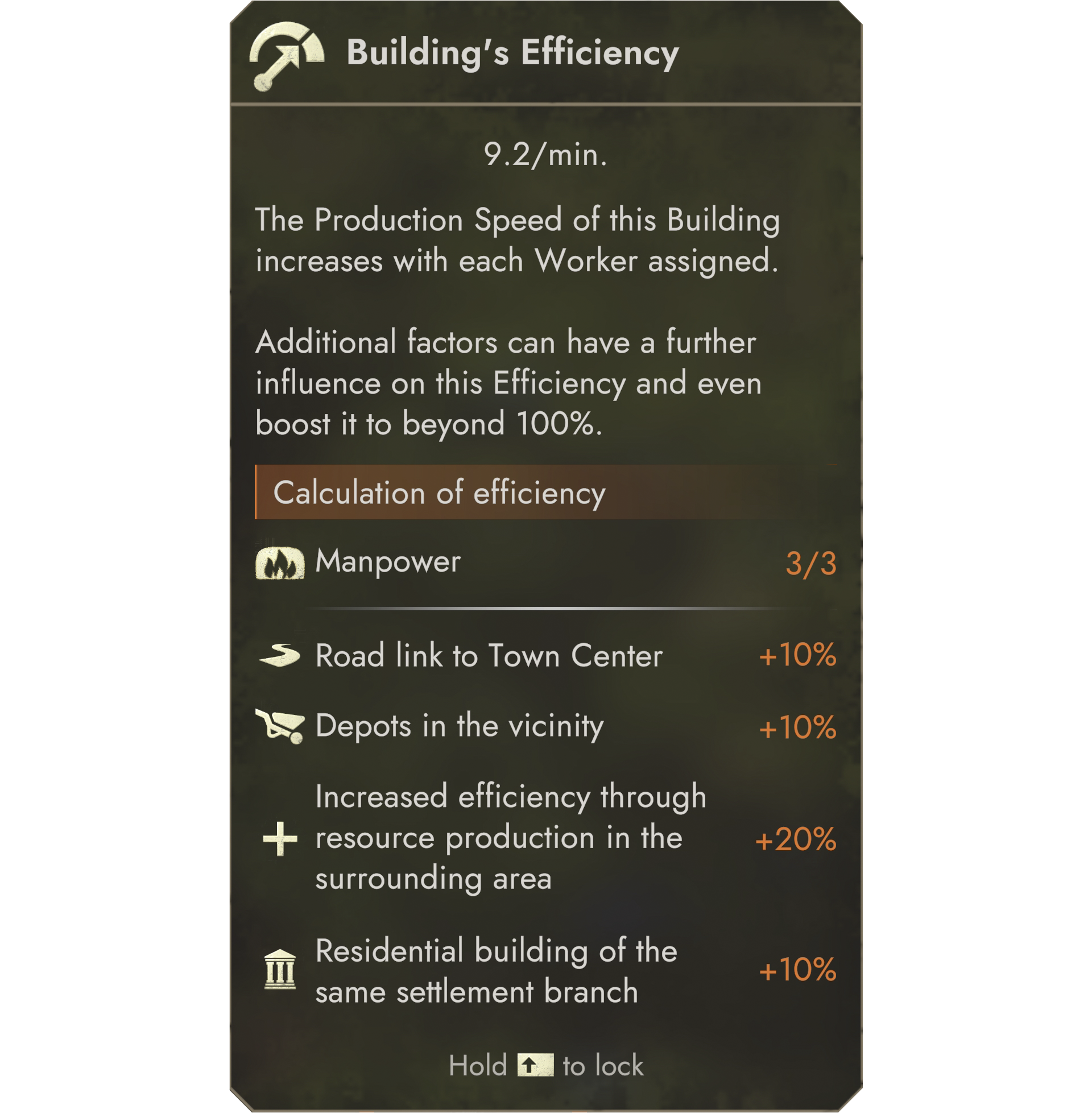 - Road networks and storage buildings, as well as housing of the same settlement branch, also increase efficiency.