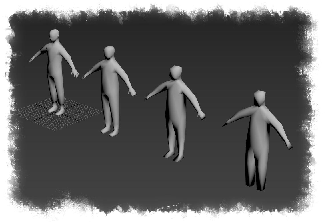 Later in the game a lot of your settlers will be visible at the same time when viewing your settlements from a distance. This is where Level of Detail [b](LOD)[/b] comes into play. We’ll create different versions of a settler model each with further reduced mesh resolution. We do this until we reach a very abstract version. It doesn’t really have to look like a settler anymore as the player won’t identify it from a distance.