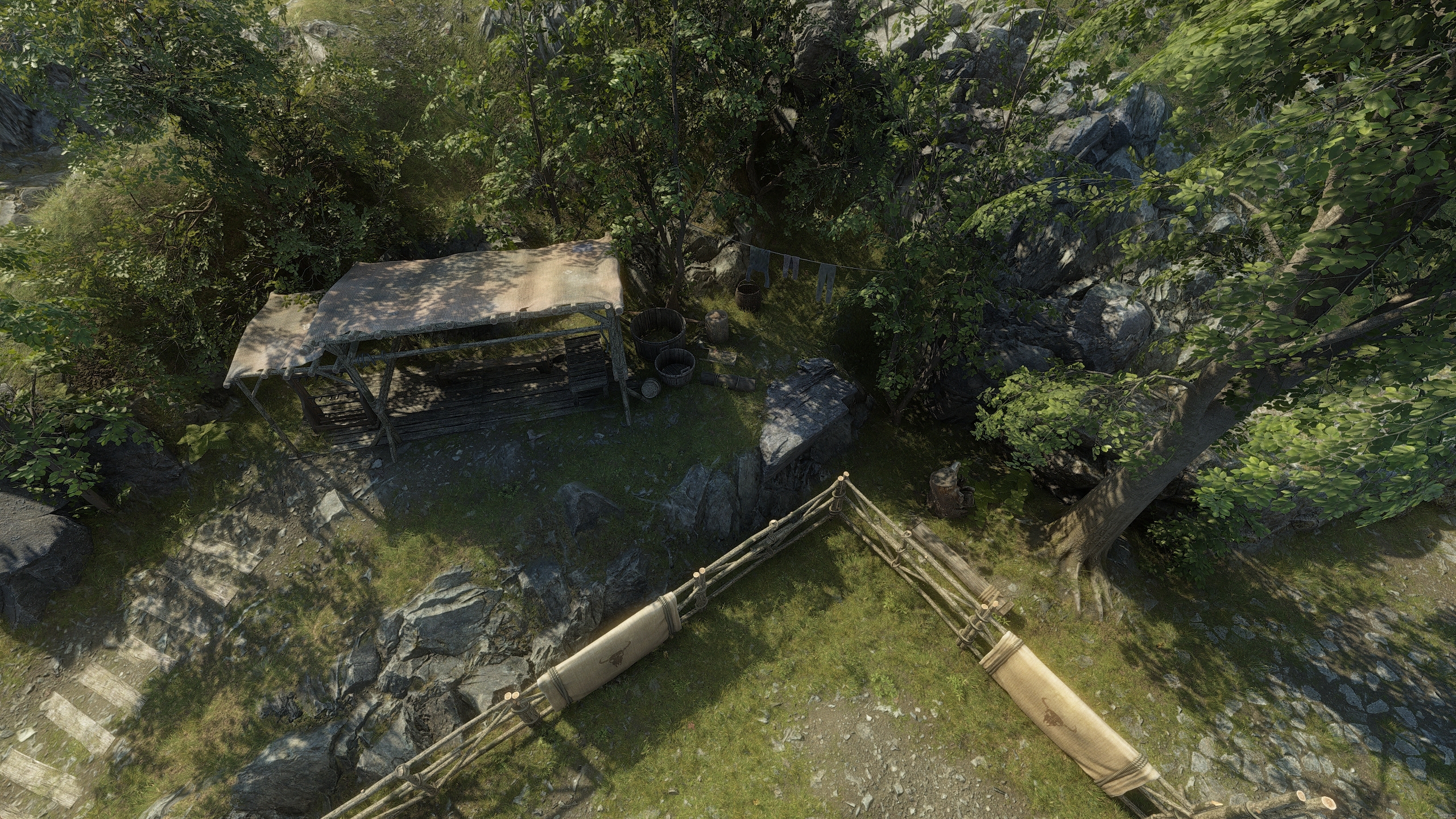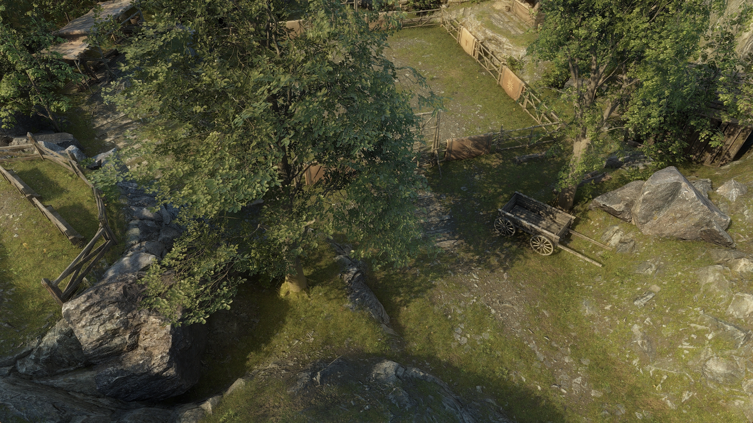 With this chapter closed, it's time to move to other topics. You may have noticed a pattern recently of us working on things for natural environments. We overhauled our terrain system, we dramatically improved our rocks, improved 3D grass, lighting, we extended our generative tools with features for more organic assets and various things besides. This will all be critical when we move on to overworld content, but the reason we're doing it now is because the next area that will be added is The Gardens, and as the name suggests it will feature lots of nature. One difficult problem remains, which is vegetation. Recently we've been working on adding high quality trees and plants to our repertoire, and also on realistic, but performance efficient foliage rendering, which includes some additions to our global illumination and translucency effects.