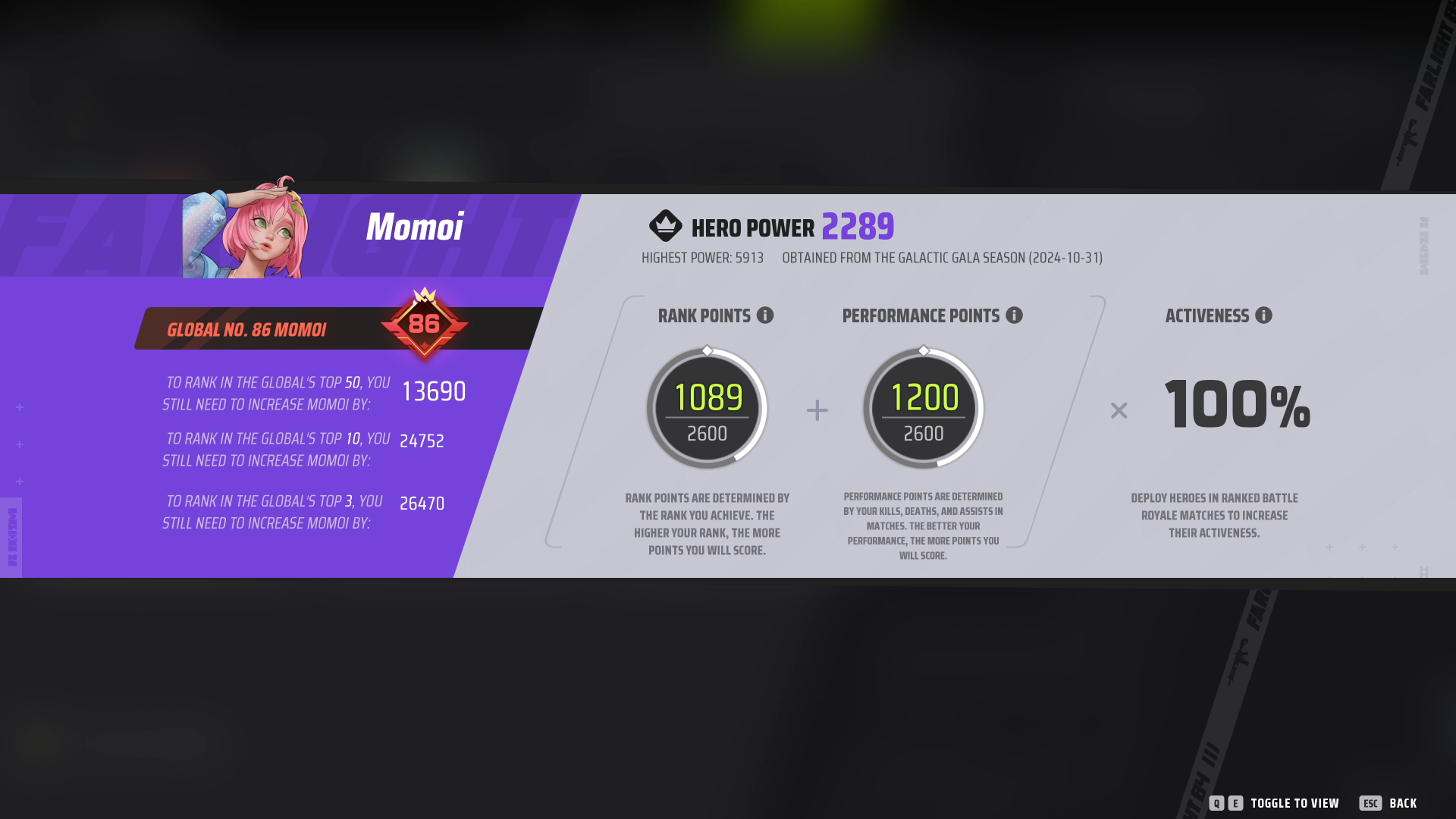 a. The Hero Power system has been redesigned. Hero Power is now comprised of Rank Points, Performance Points, and Activeness. - Rank Points are determined by the rank you achieve in matches. Performance Points are determined by your kills, deaths, and assists. Activeness is determined by how frequently you use a hero. - You can see how your Hero Power is calculated by going to Profile - Hero Power. b. The maximum limit of your Hero Power is also determined by your tier. The higher your tier, the higher the limit. c. Players with heroes who have over 5000 Power will retain a portion of it in the new system. d. Players with Hero Power under the minimum will not be placed on the Leaderboard.