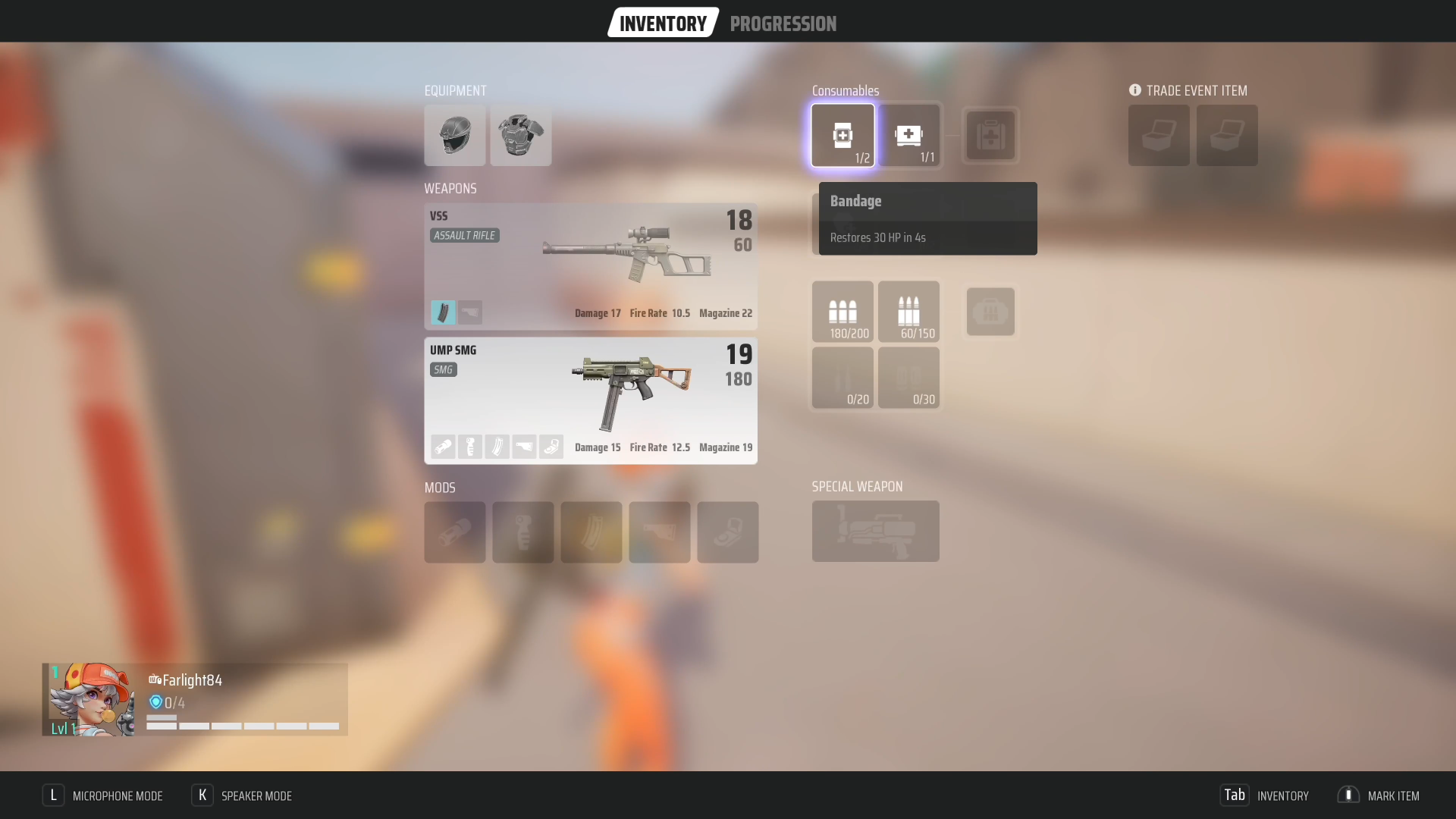Added Bandage, which restores a certain amount of HP. Also Med Kits now restore all HP.
