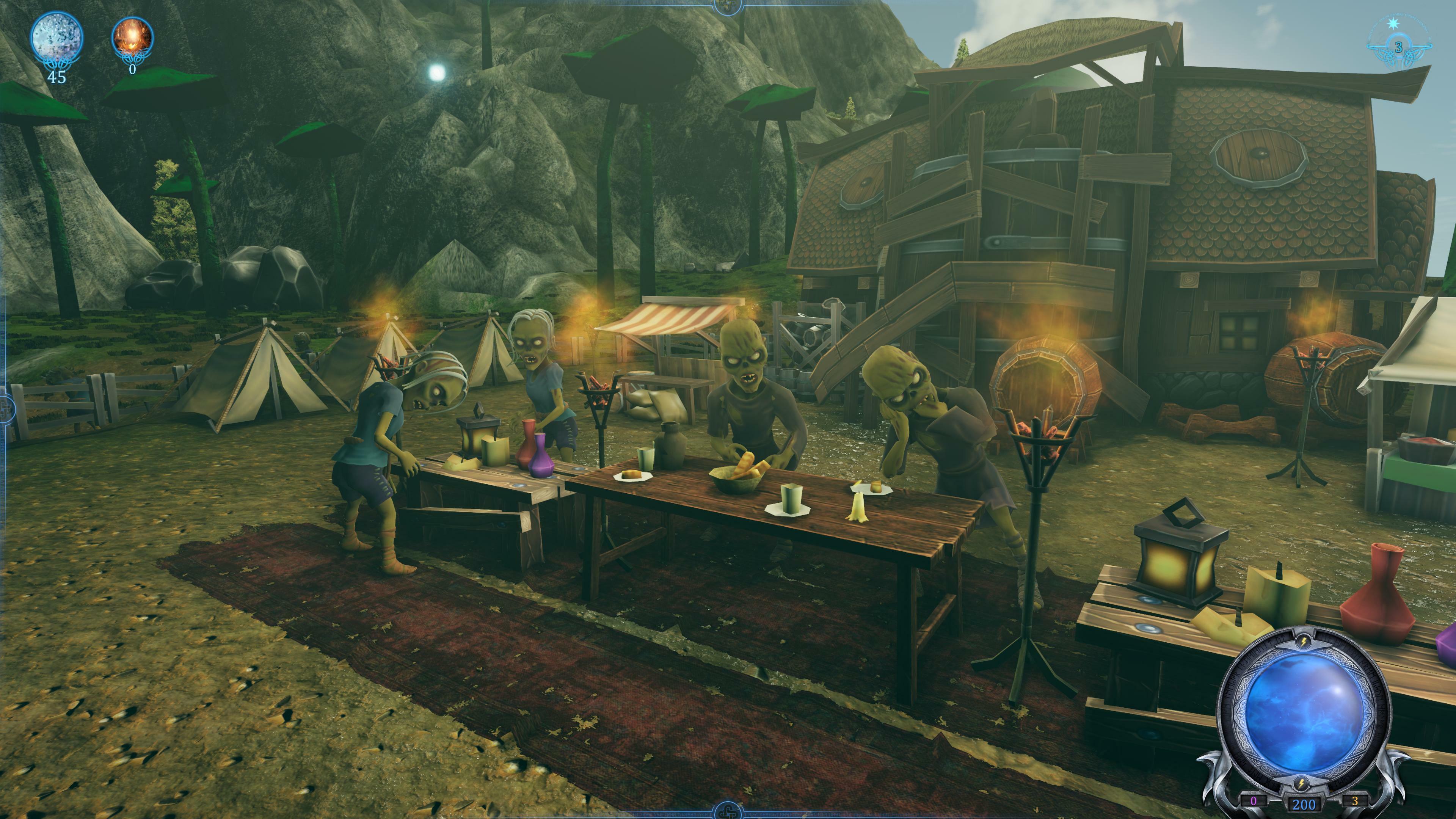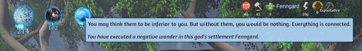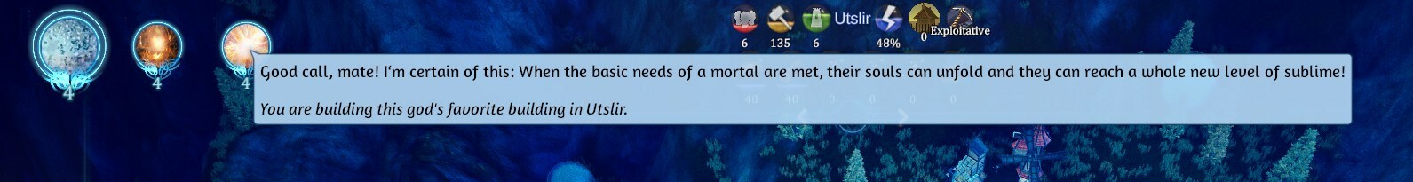 [b]The View Menu:[/b] this menu allows you to search for specific attributes in your current surroundings. Looking for mortals with low health to help them to recover (or bring it to an end..)? Looking for those who follow another god? Need to know who is most productive?The strongest warriors? This is the way to go: just select the corresponding attribute and all important details are directly rendered on top of the surrounding mortals. You can either lock your setup for further investigations or shortly hover over an icon to get a first impression.