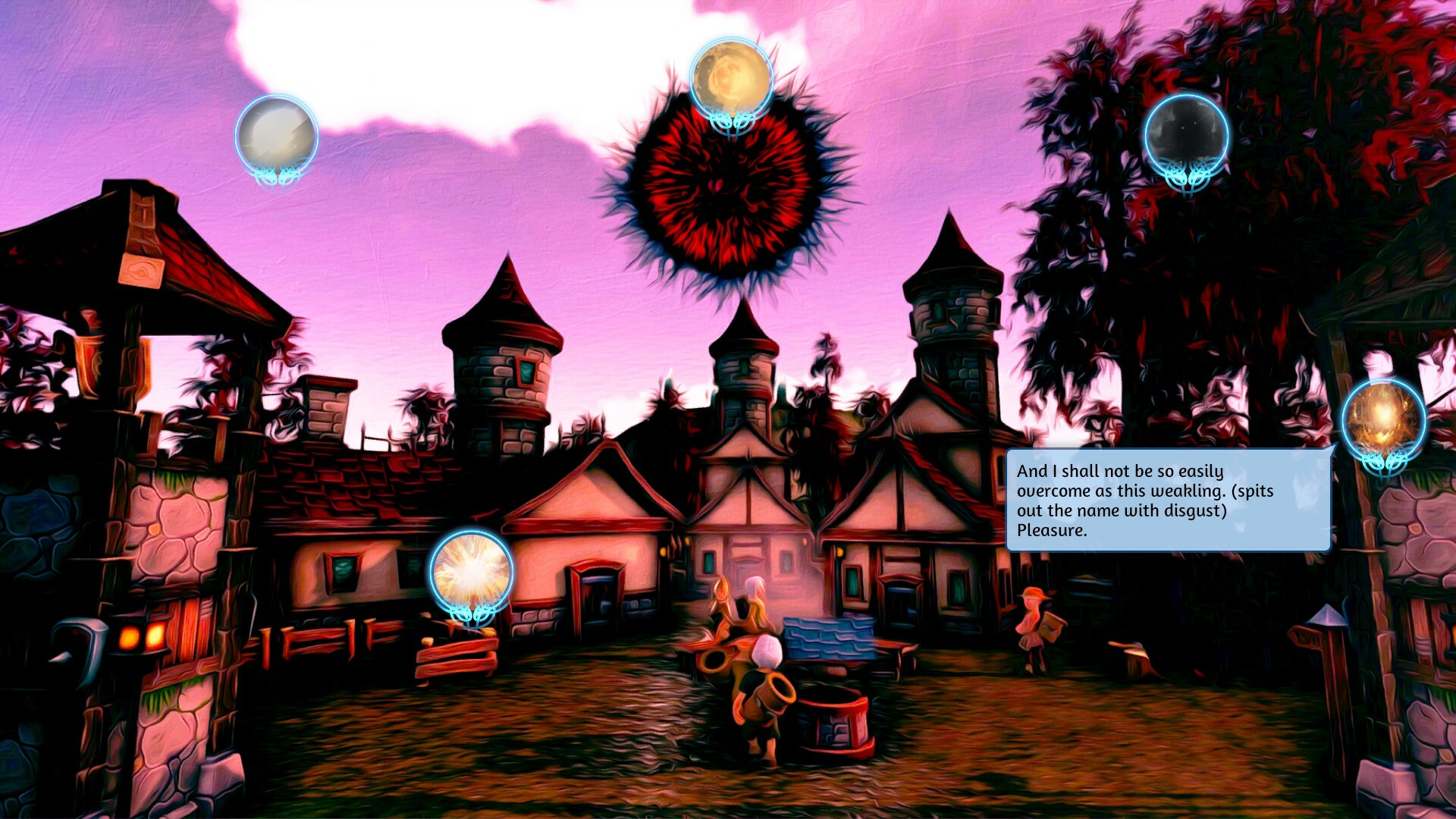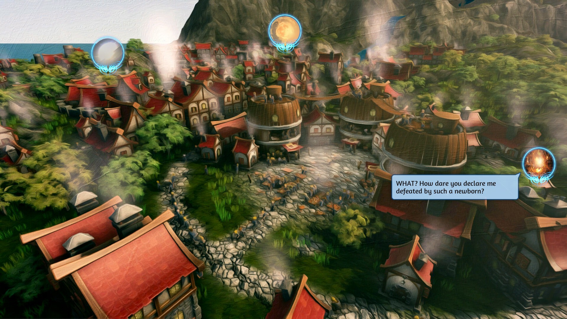 Fata Deum lets the player experience the story of a young god who learns to lead its human followers and to assert itself through them against divine rivals. In a process of increasing challenges, it not only finds out more and more about its opponents, but also about itself.