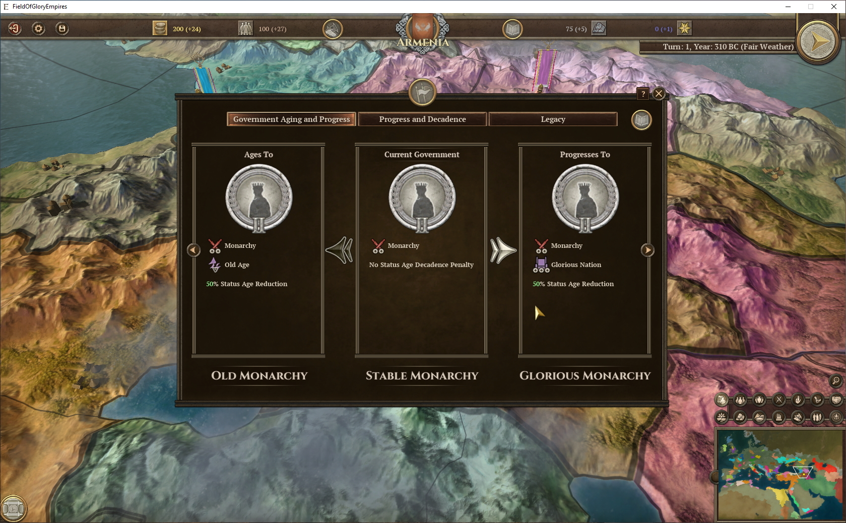 • Government Aging and Progress UI (access it by clicking on the government button, nation panel)