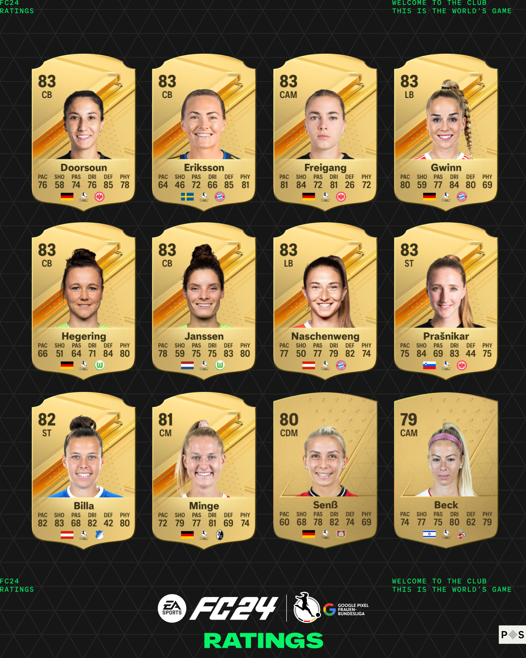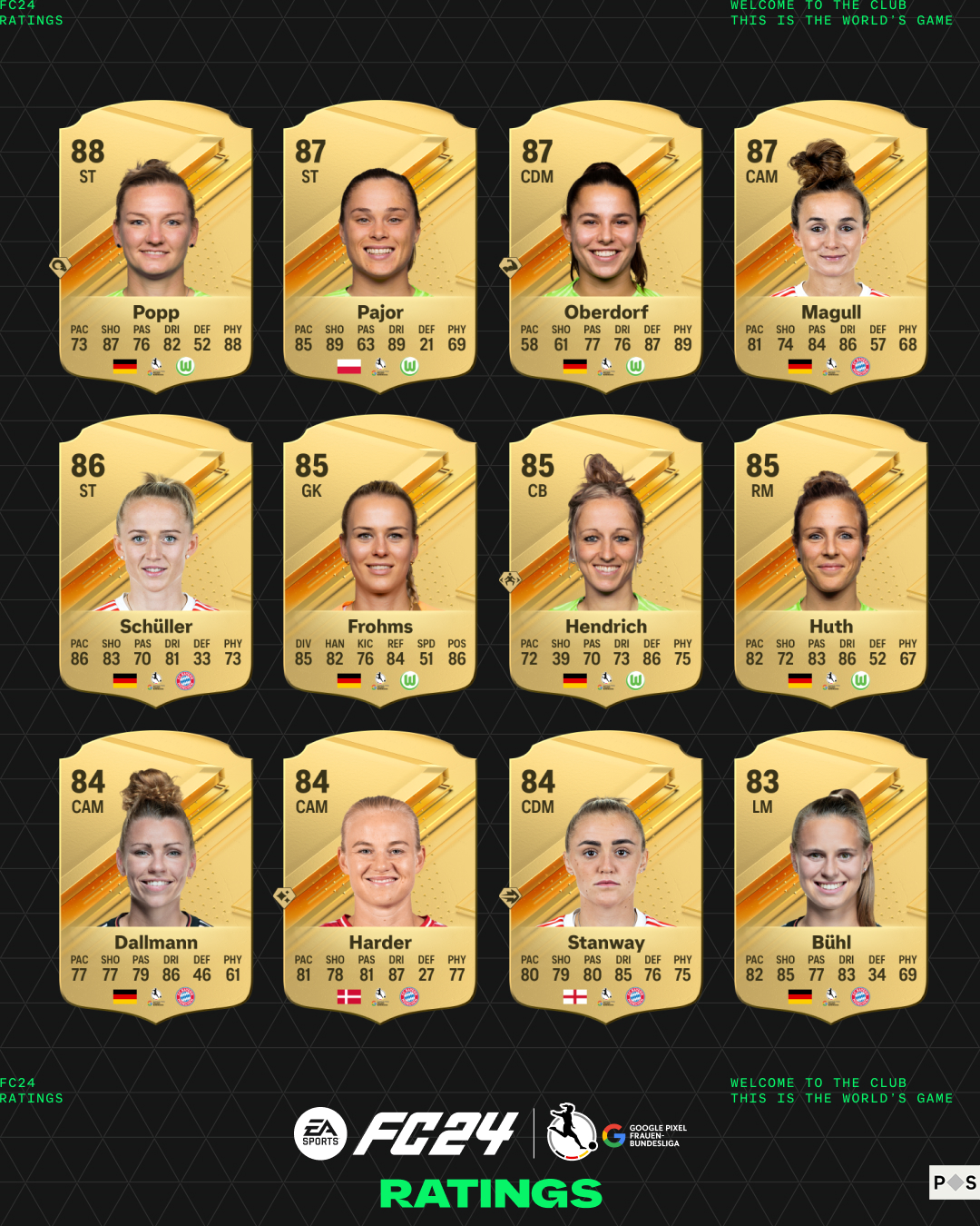 The Frauen-Bundesliga makes its debut as EA SPORTS FC™ 24 kicks off the new era with data-driven Ratings and PlayStyles. See how your favourites rank.