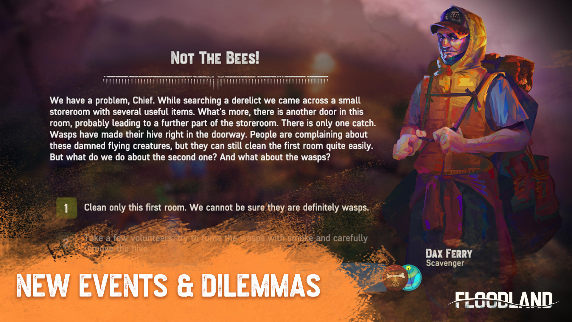 From out there among the drowned ruins of old comes word of eight new clans to be discovered. Four can be selected as a starter clan when you begin a new game and four are out there, surviving. Each represents a binding ideology that has kept them alive this far. Fronted by a leader who will express the clan's story and the different traits the clan possesses.