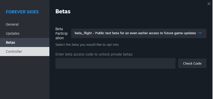 - In your Games Library click on [b][i]Forever Skies [beta_flight][/i][/b]