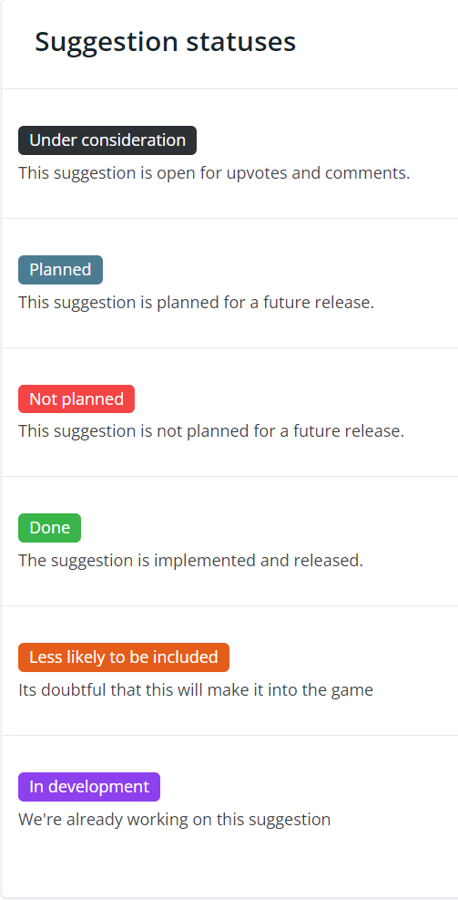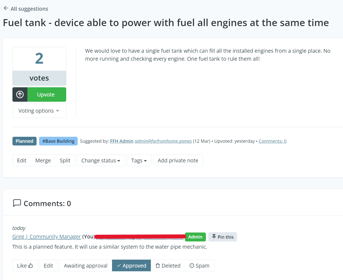 By introducing the Feature Upvotes Page, we aim to foster a sense of community and collaboration in a better way than before. Your input is invaluable to us, and this platform ensures that not only can you see what you and other players want out of Forever Skies, it also gives you a visual on the popularity of your ideas and real dev input regarding the likeliness of your ideas making it into the game!