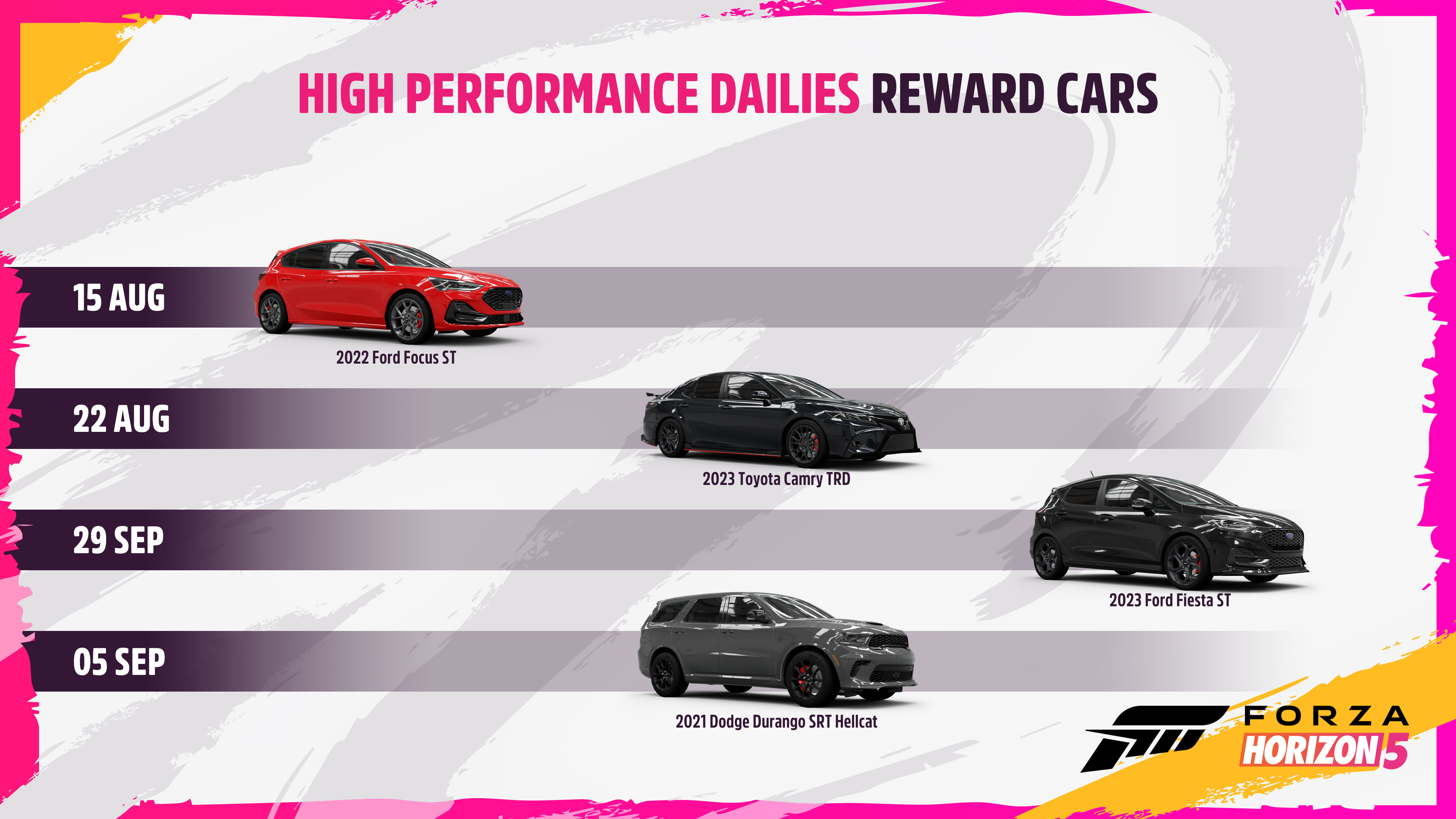 Make room in your garage for three hatchbacks and an off-road SUV as the weekly rewards coming to Forza Horizon 5 in High-Performance Dailies.