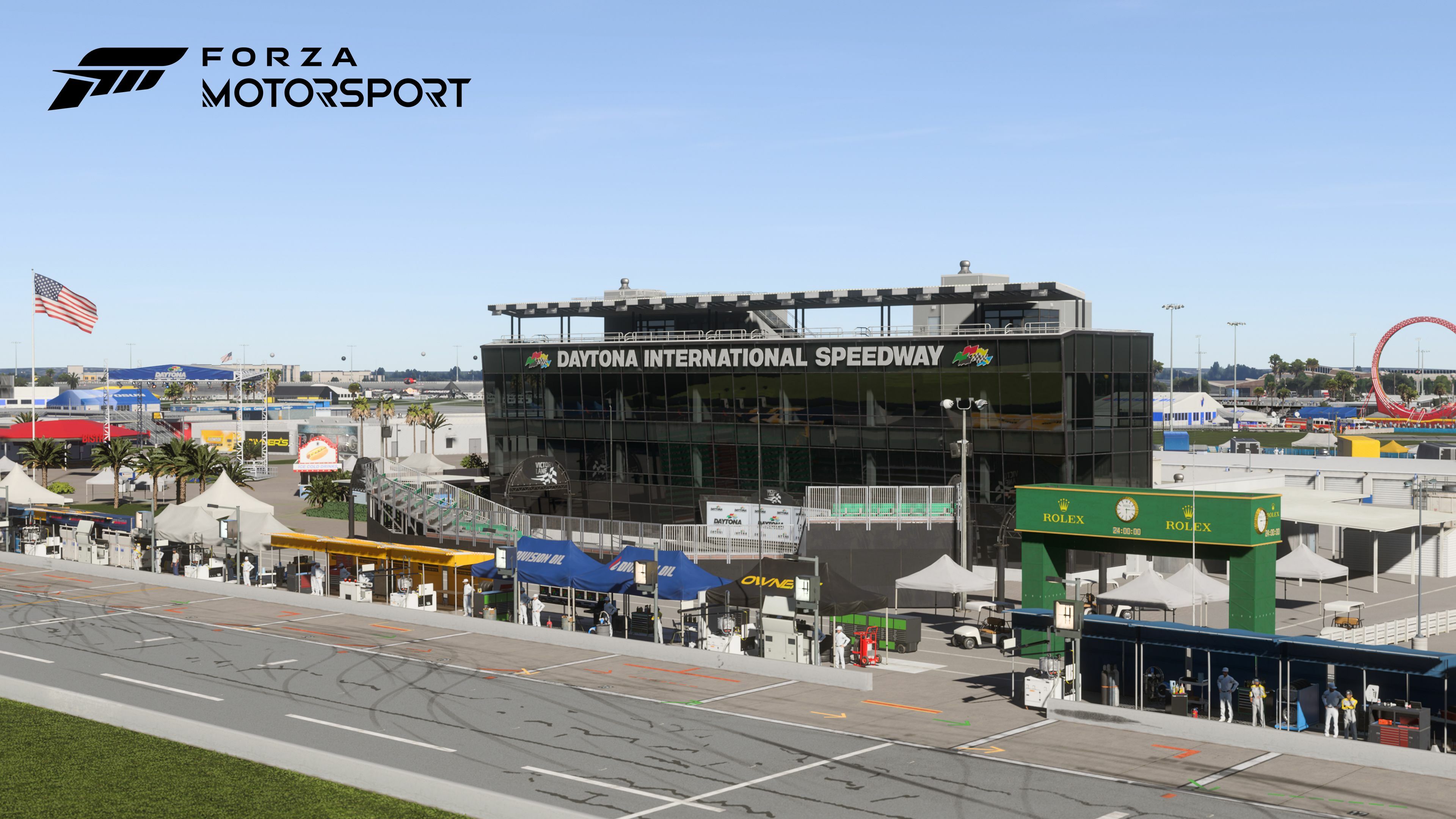Daytona International Speedway is a historic, world-famous track with banked, high-speed corners and in Forza Motorsport, it features two distinct layouts. Master the high-velocity 2.5-mile Tri-oval Circuit and the technical, more challenging 3.59-mile Sports Car Circuit.