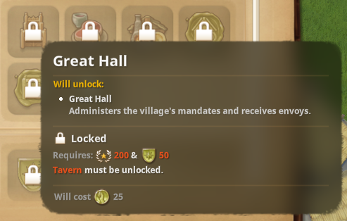 You will also notice that the Splendor cost of each Estate unlockable from the Progression tab (F5) is now displayed in their tooltip, even if the requirements have not been reached yet.
