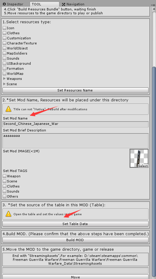 3. On the second step, “Set Mod Name”, Description and put an Image.