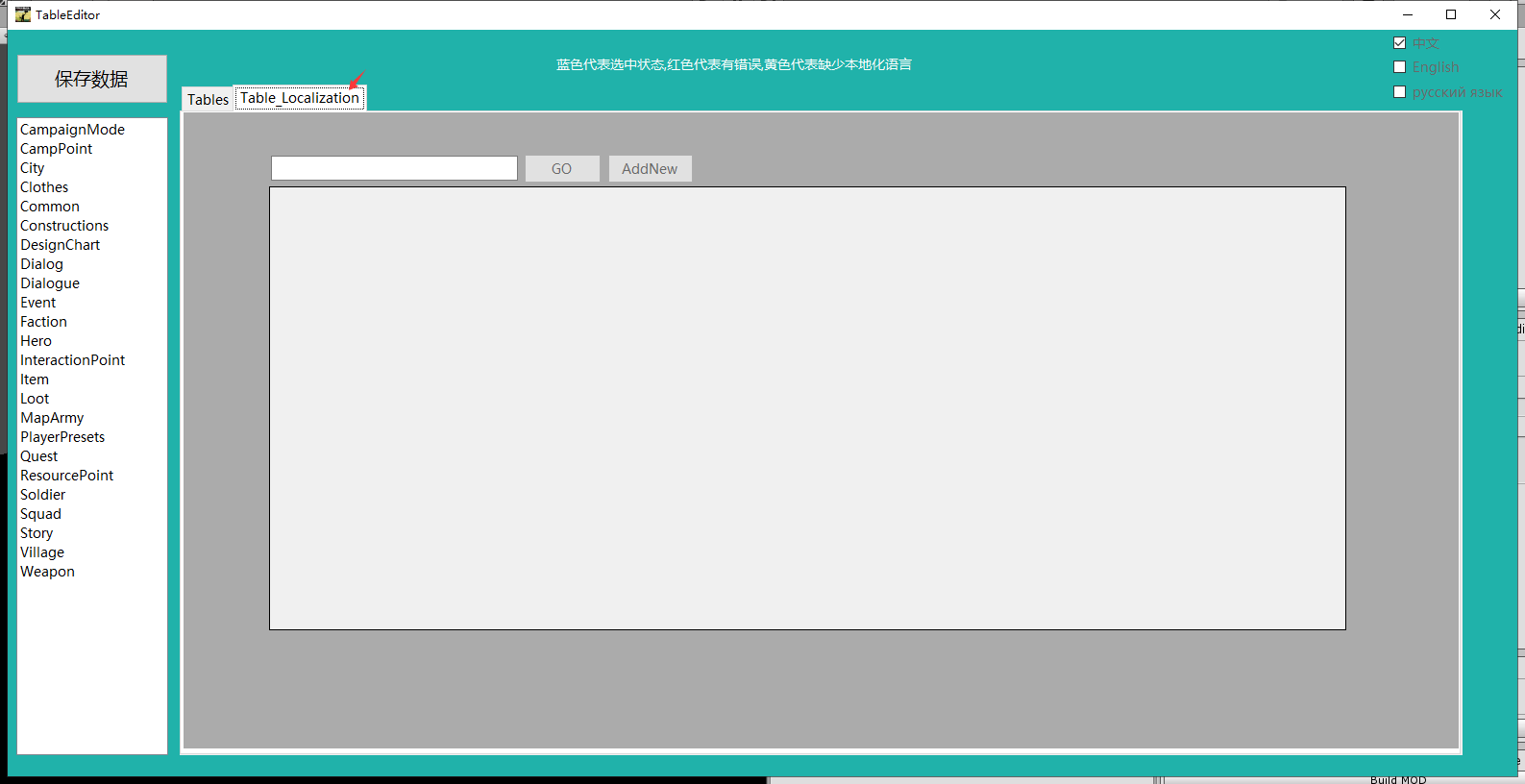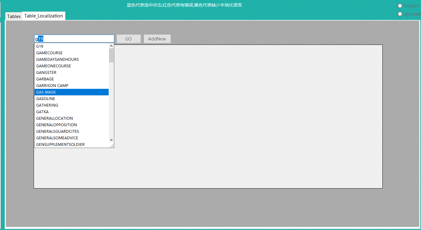 6. You can type in a word from the text which you want to change or name/ID of the item, which you want to change, then click “GO”. You can AddNew, create a new key and then change with the key you want.