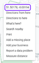 [*] Find the geographical coordinates (latitude and longitude) in decimal degrees, for example 51,503° / 0.00° for a location in London. To get coordinates, simply open Google Maps and right-click on the point you want: