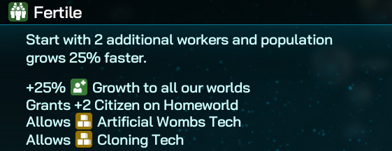 Fertile grows Citizens at a rapid rate and provides access to a couple of extra techs that help boost Citizen production.