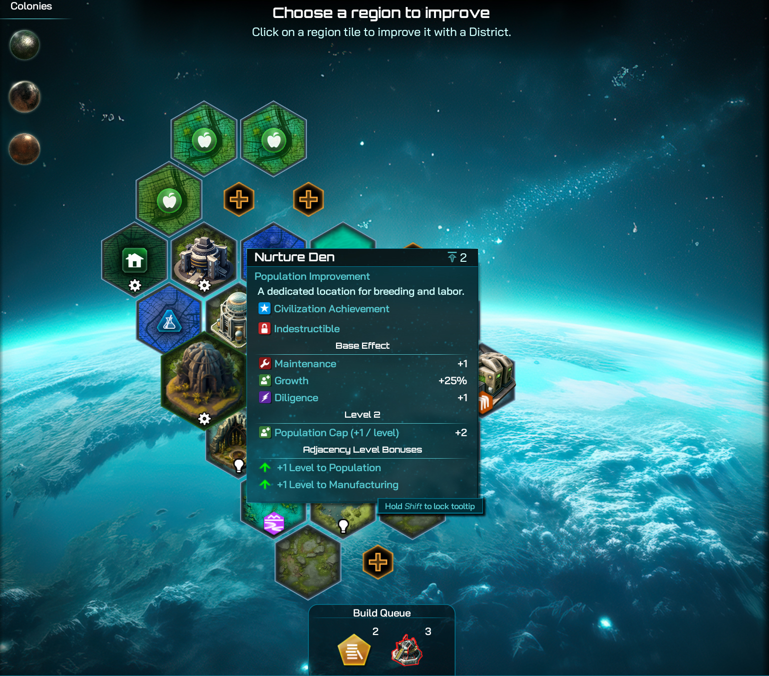 However, once you research Genetic Architecture, they’ll start pulling their weight properly and then you’ll be pretty glad you built homes for them all, as your Citizen-based industrial bonuses shoot through the roof.