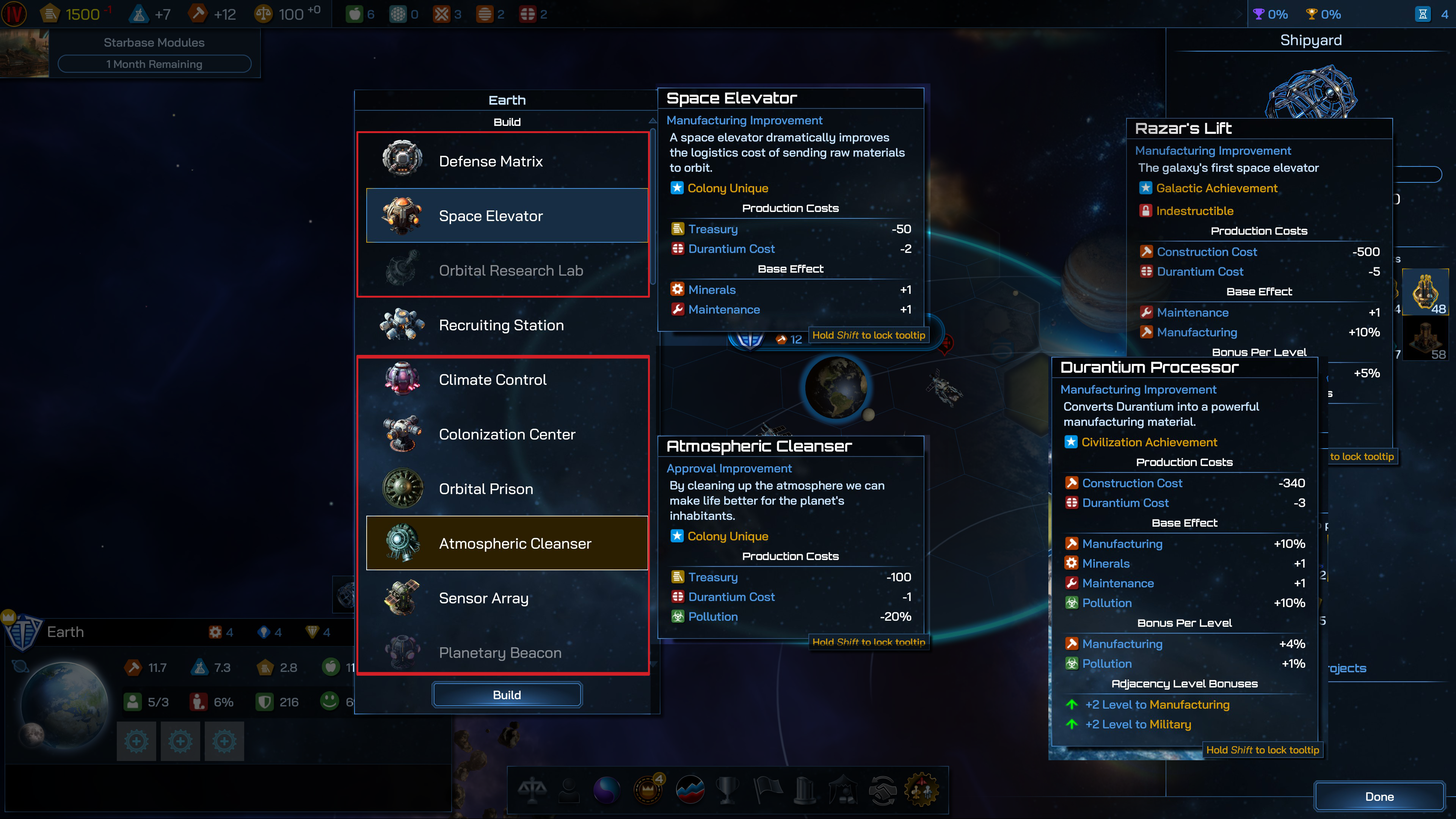 A steady supply of Durantium will invariably accelerate the development of your colonies and allow you to increase their Manufacturing capabilities.