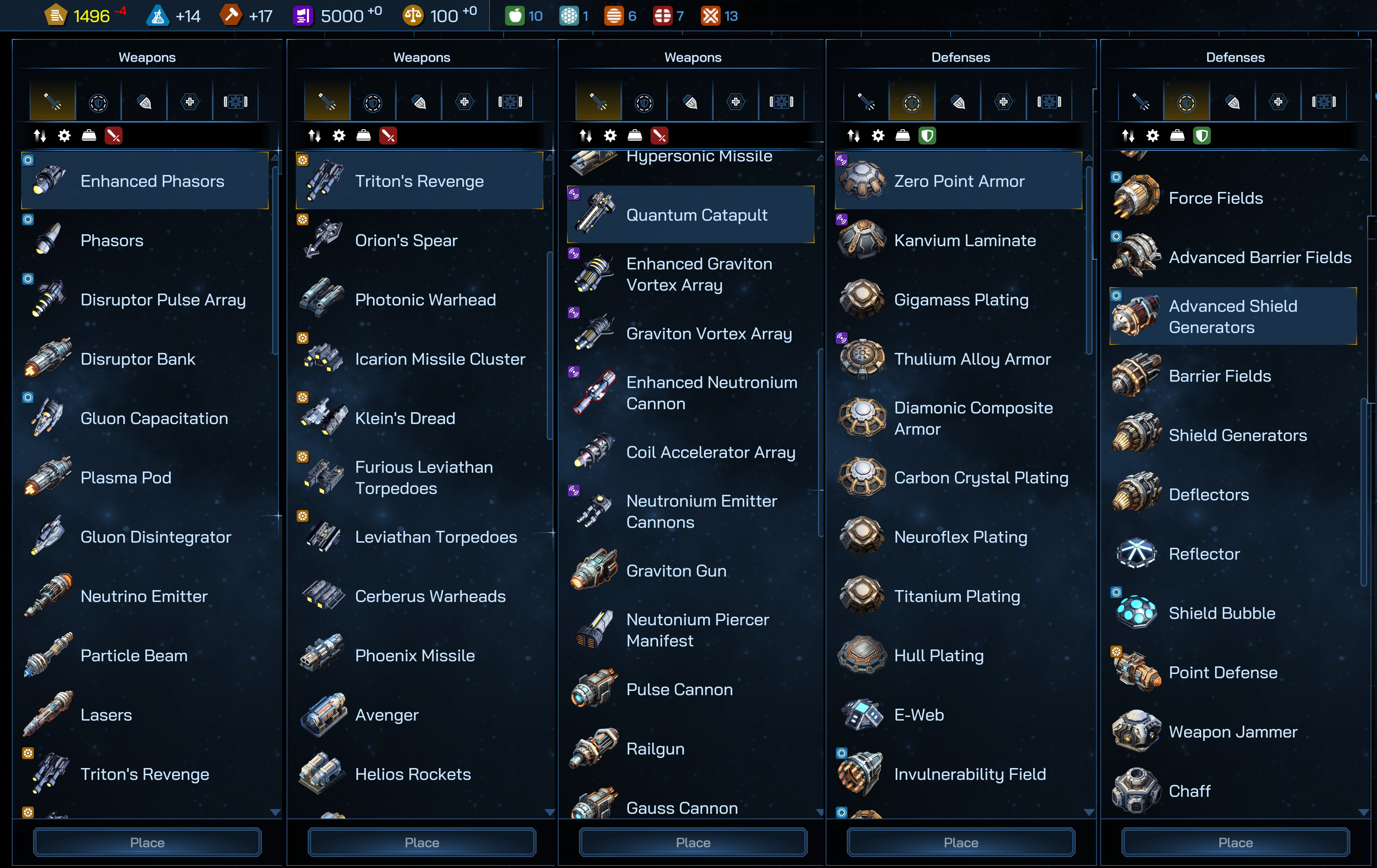 Elerium is used to construct ships with powerful Beam Weapons and Shields, Antimatter is used in Missile Weapons and Evasion systems, and Thulium is used in Kinetic Weapons and Armor.